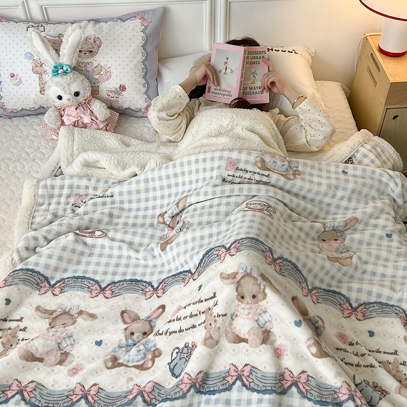 昔可家纺 2024新款羊羔绒牛奶绒毛毯系列(三)-场景二-洛丽塔系列 小熊烘焙屋
