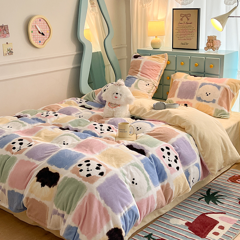 昔可家纺 2024新款印花牛奶绒四件套系列-卡通系列 糖果小狗