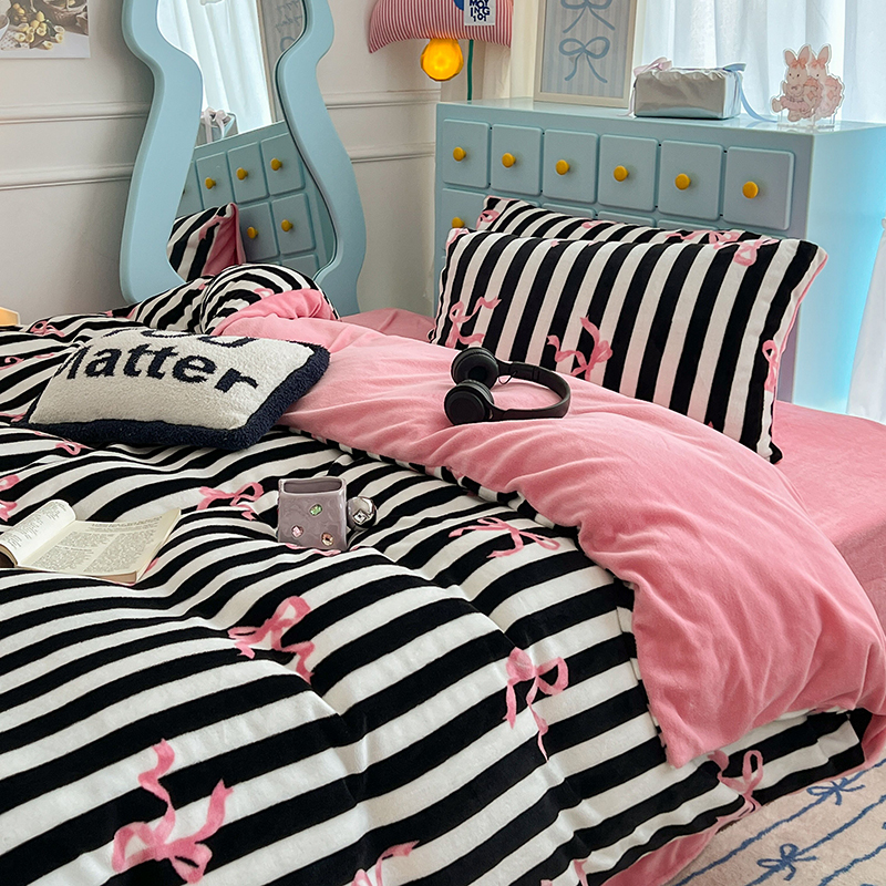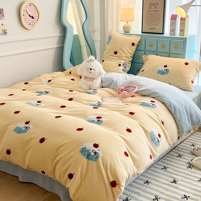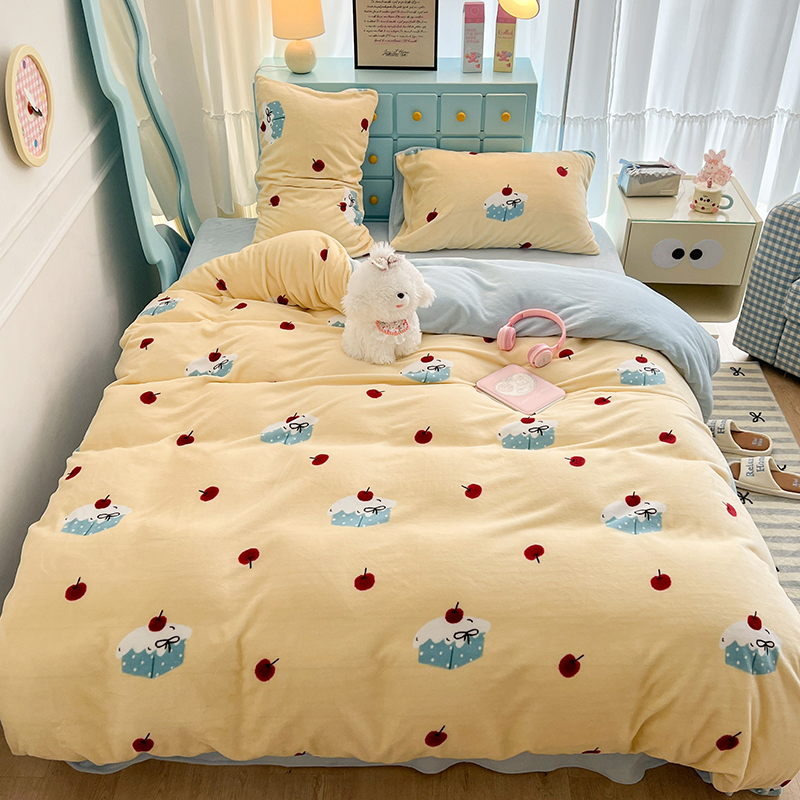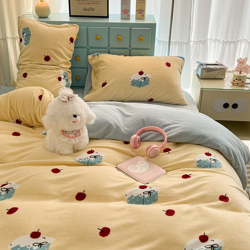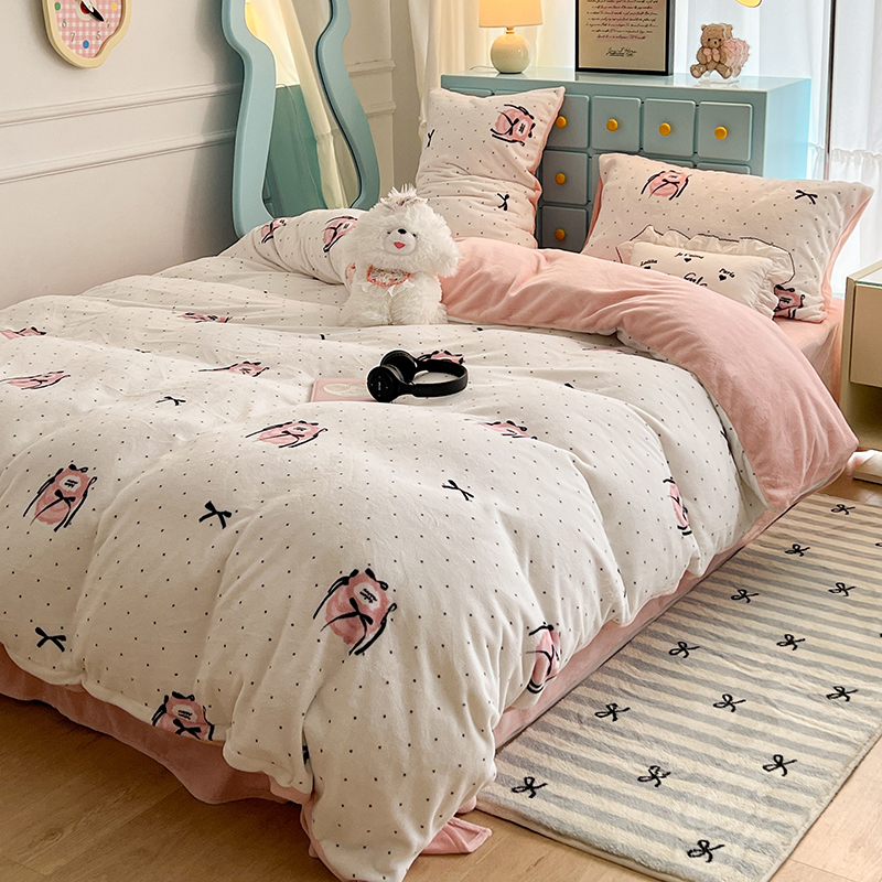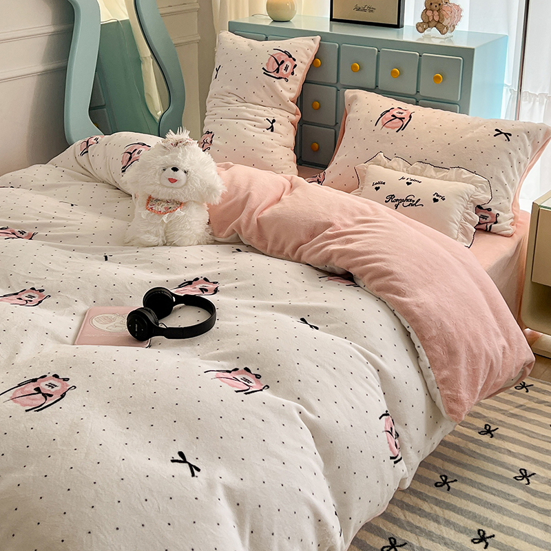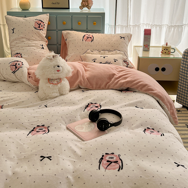 昔可家纺 2024新款印花牛奶绒四件套系列-ins少女系列 芭蕾蛋糕