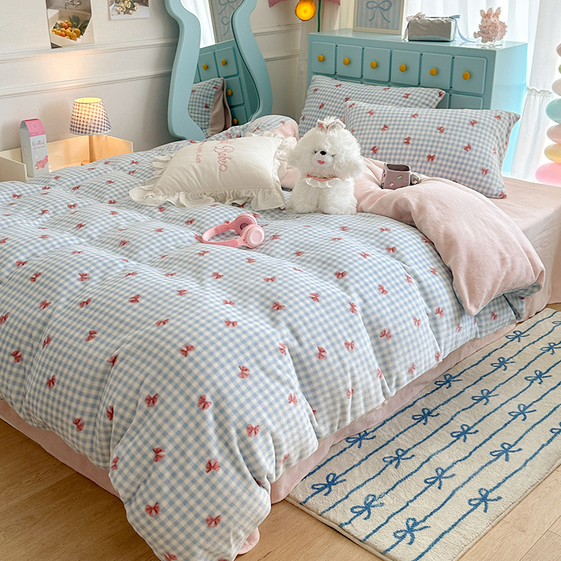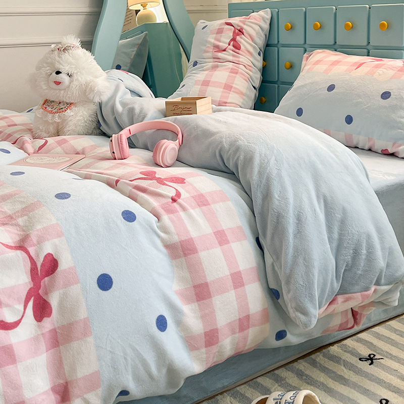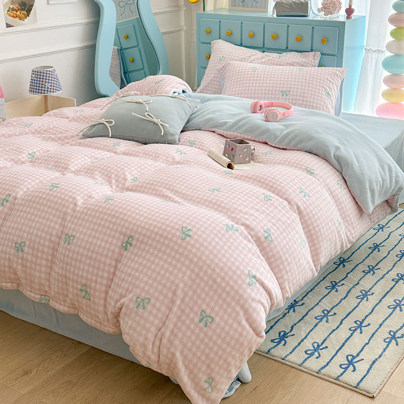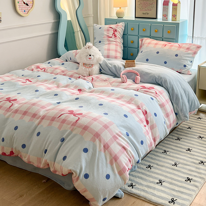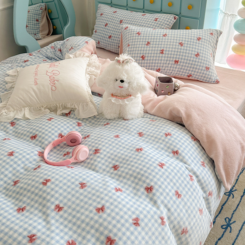 (总)昔可家纺 2024新款印花牛奶绒四件套系列-ins少女系列,芭蕾蛋糕,芭蕾美学,粉格蝴蝶结,黑粉芭蕾蝴蝶结,蓝格蝴蝶结,樱桃奶油蛋糕