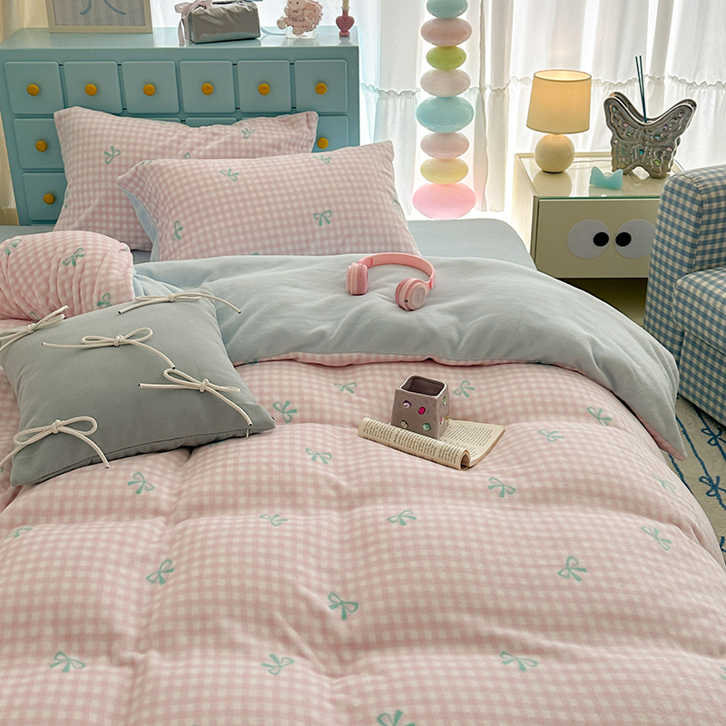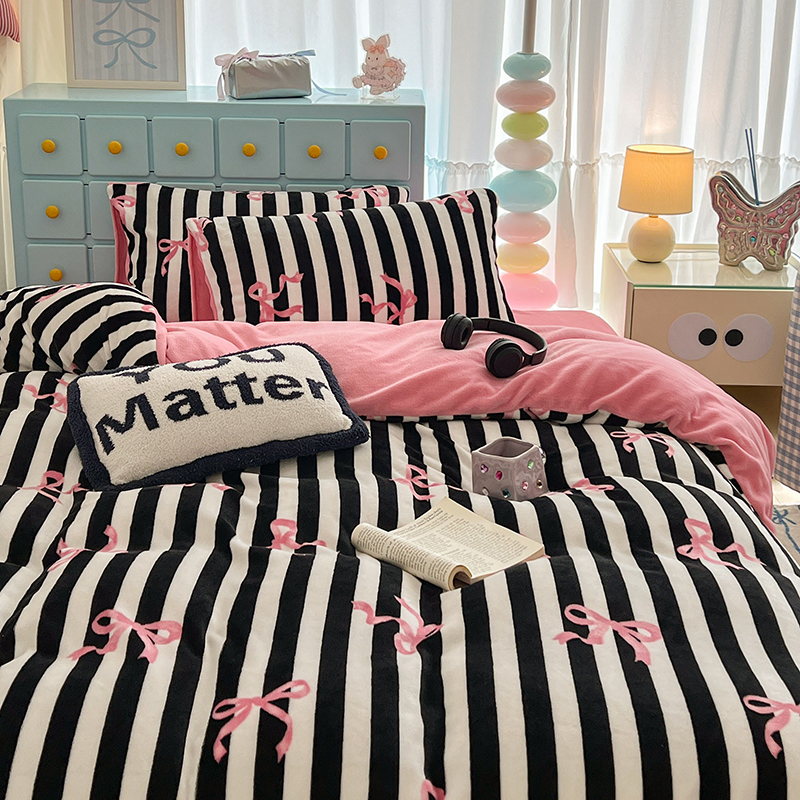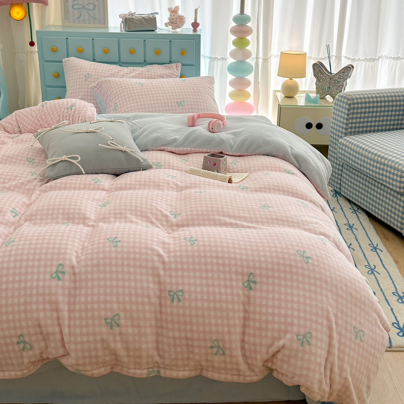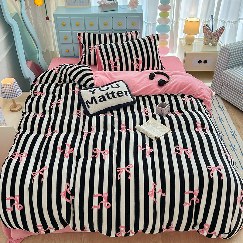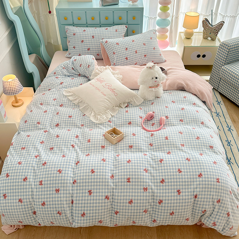 (总)昔可家纺 2024新款印花牛奶绒四件套系列-ins少女系列,芭蕾蛋糕,芭蕾美学,粉格蝴蝶结,黑粉芭蕾蝴蝶结,蓝格蝴蝶结,樱桃奶油蛋糕