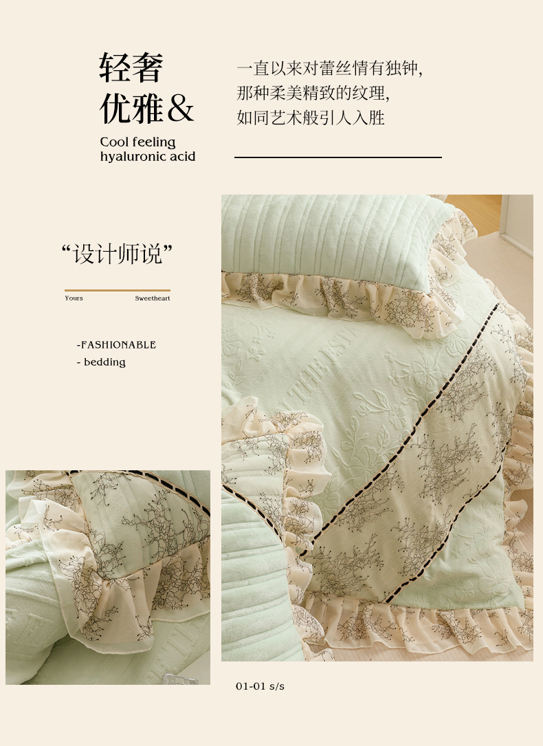 菊上家纺 2025新款小香风雕花牛奶绒蕾丝床盖款四件套-芭莎系列 芭莎-绿