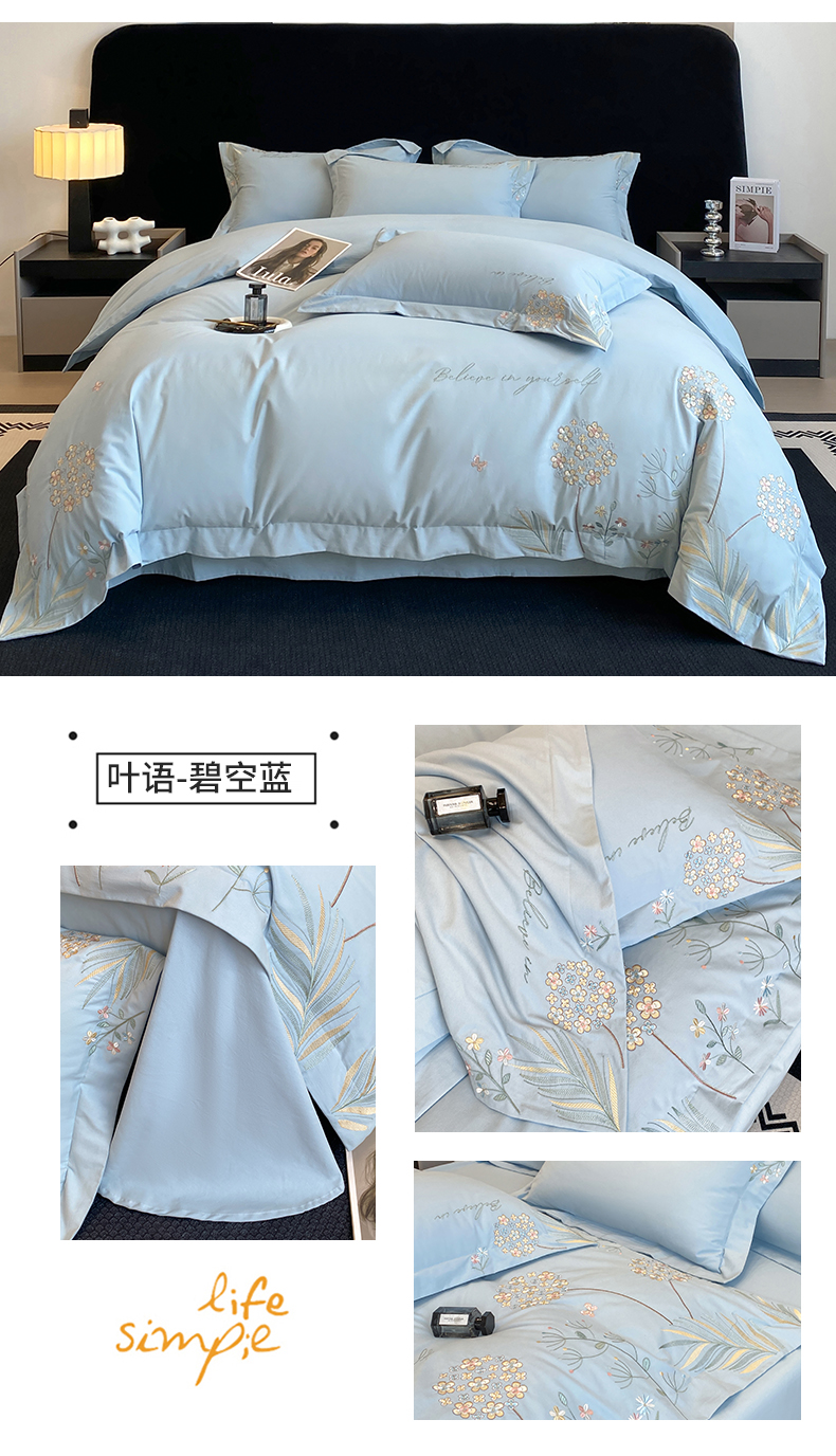 商品名称:家居1号 2024新款纯棉加厚磨毛四件套-叶语 叶语-碧空蓝