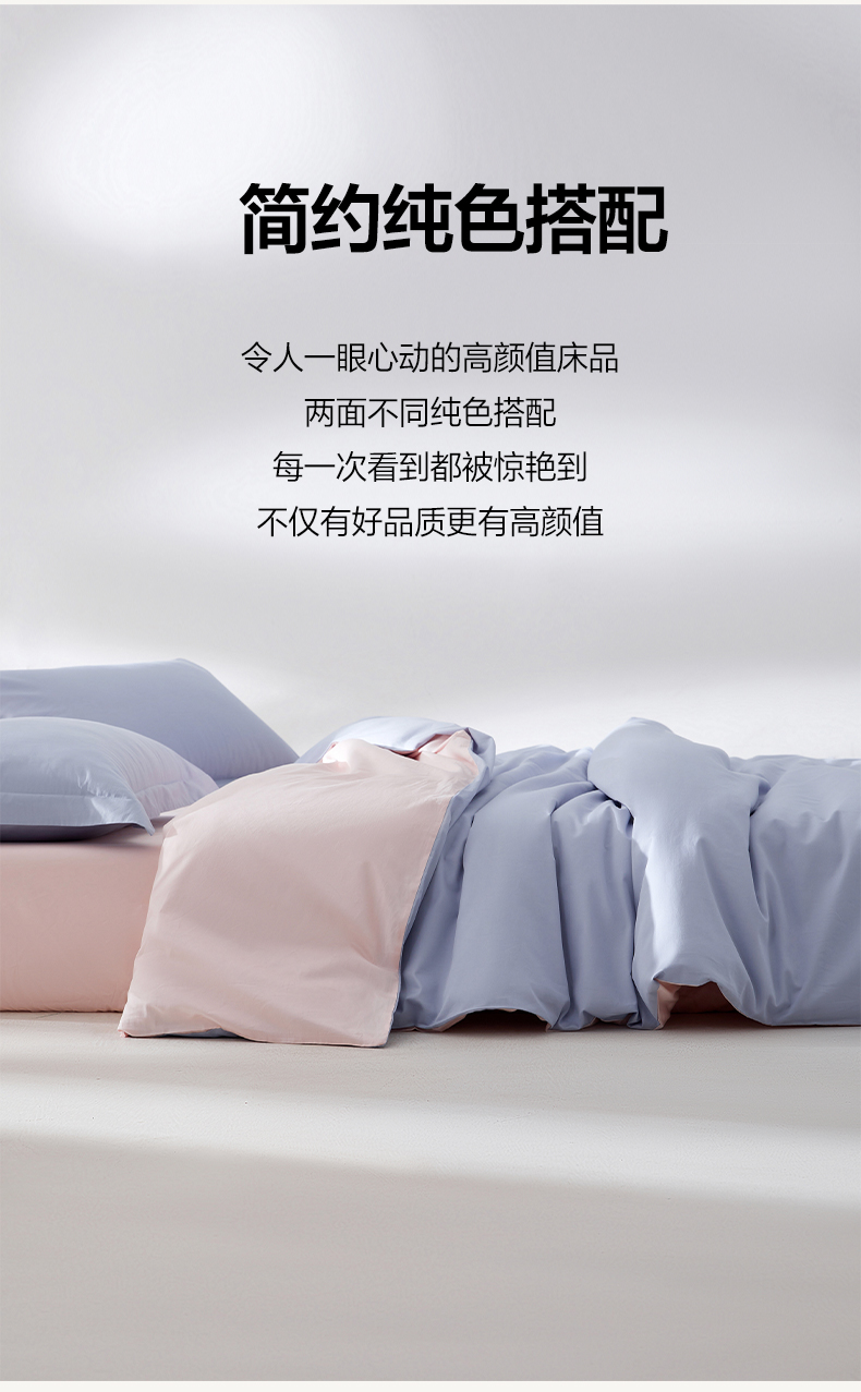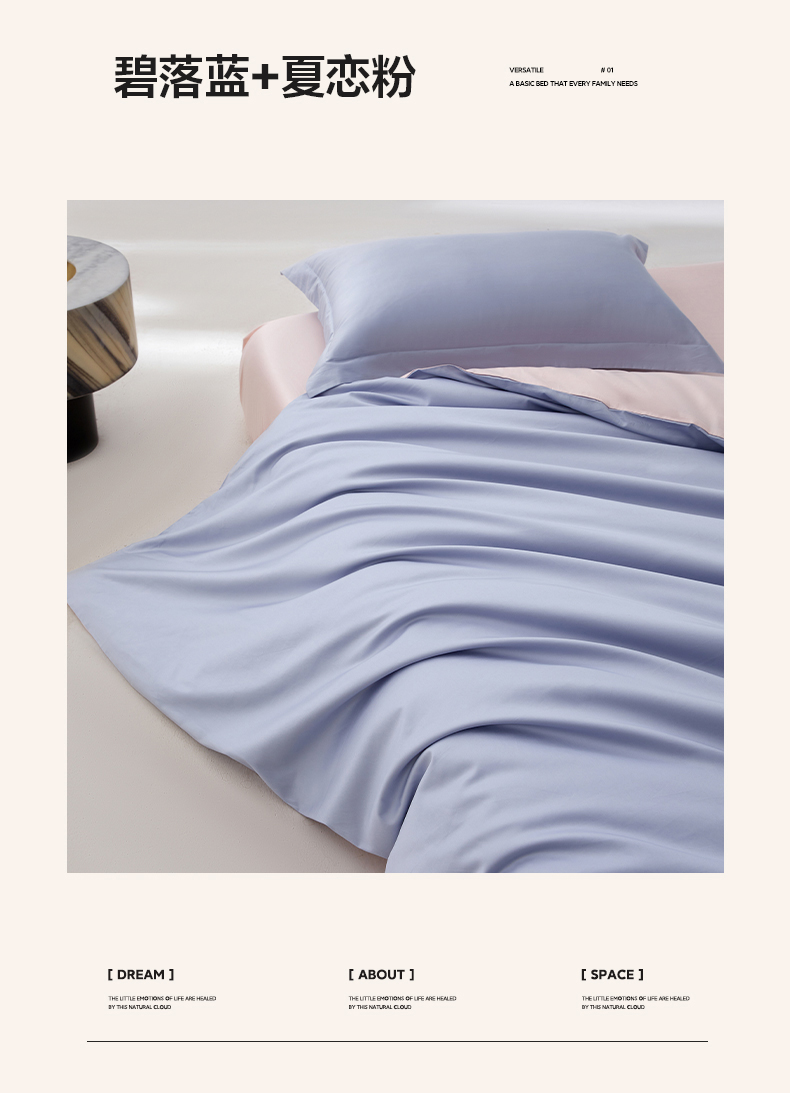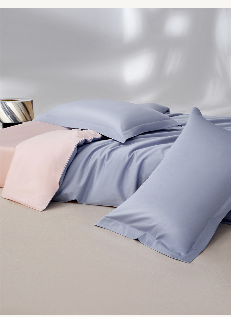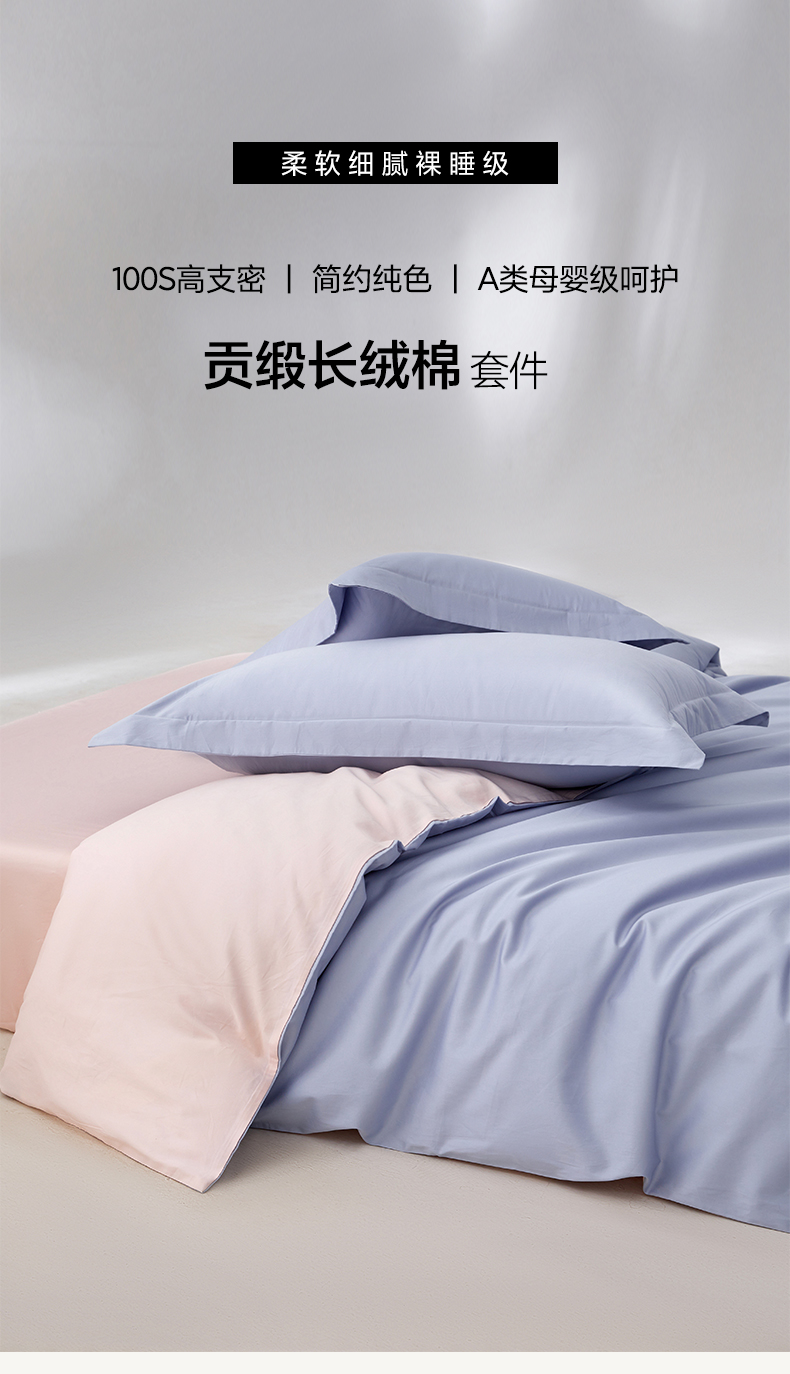 当前位置: 91家纺网 > 商品网购 > 床品套件 > 四件套 > 长绒棉四件套 > 轩和家居 2024新款A类50S贡缎长绒棉四件套系列 碧落蓝+夏恋粉