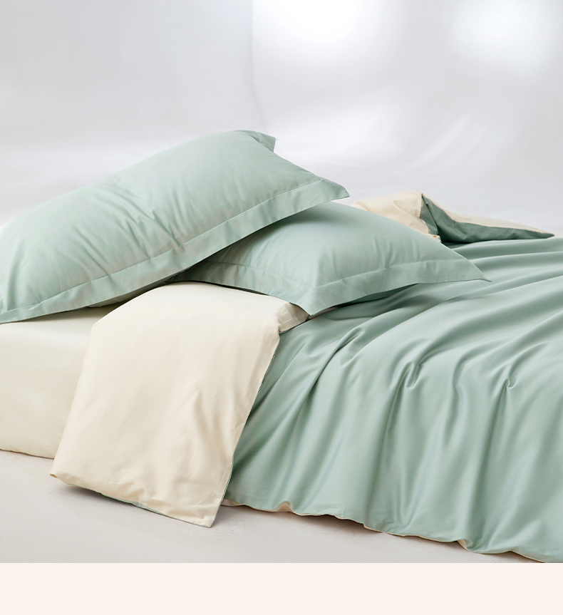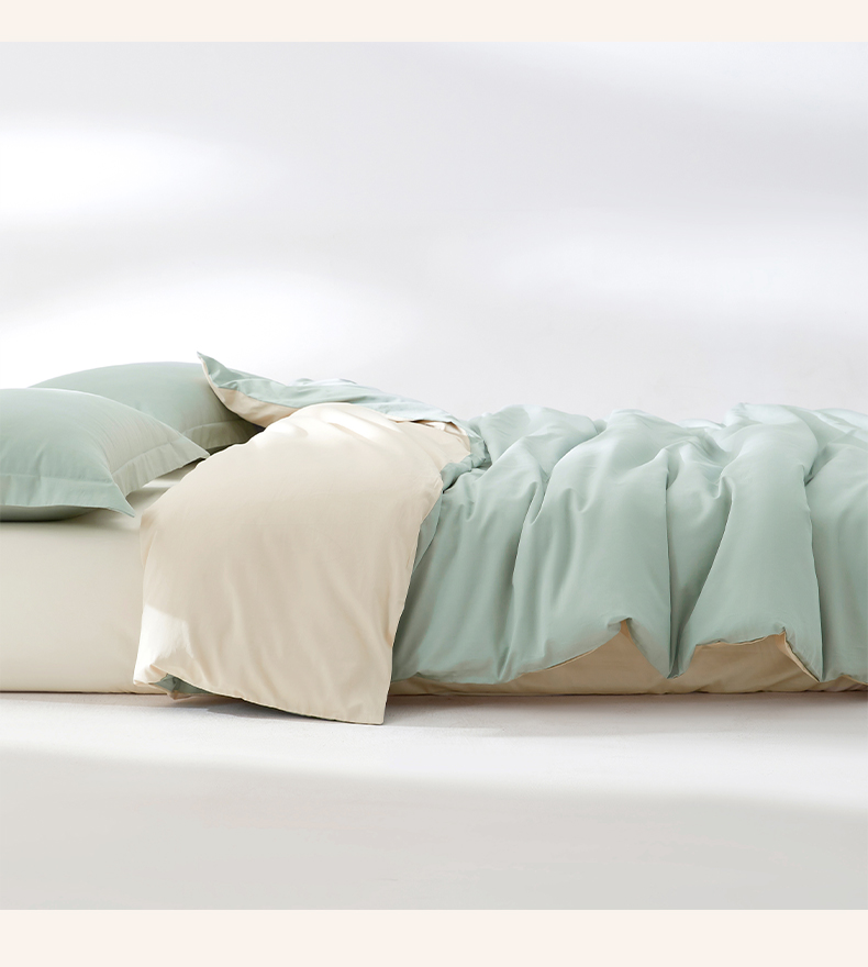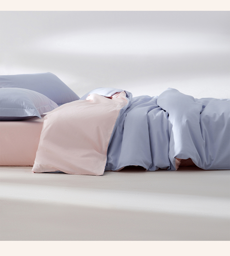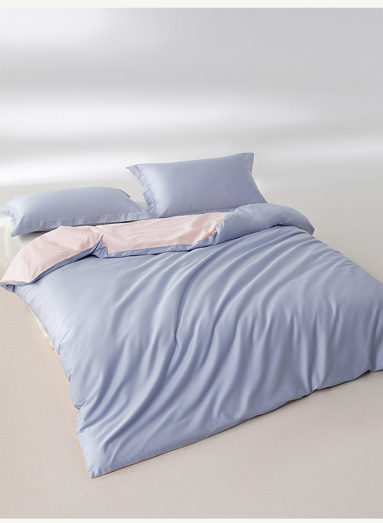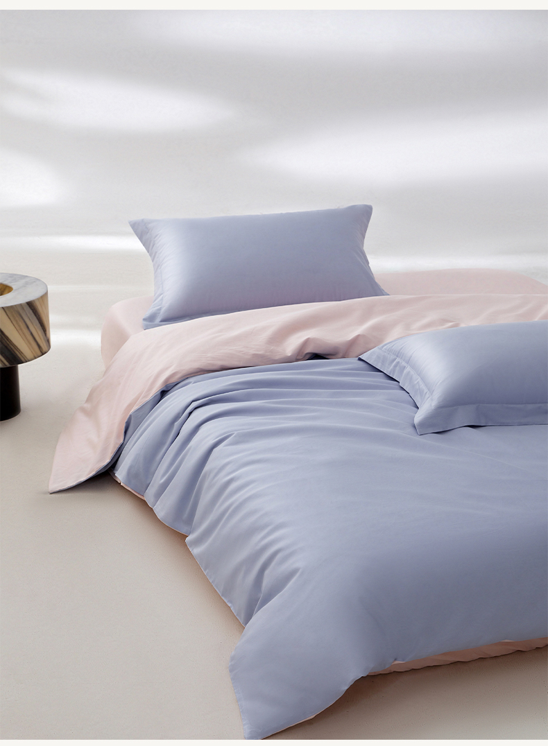 当前位置: 91家纺网 > 商品网购 > 床品套件 > 四件套 > 长绒棉四件套 > 轩和家居 2024新款A类50S贡缎长绒棉四件套系列 碧落蓝+夏恋粉