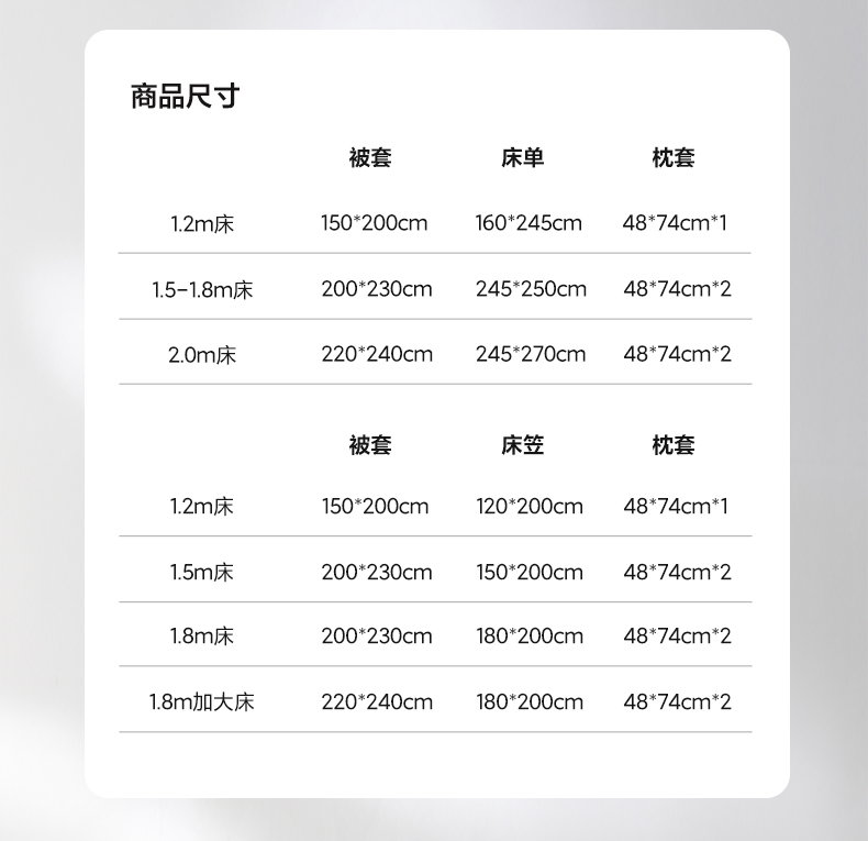 1.8m床笠款被套加大四件套 | ¥190.00 |