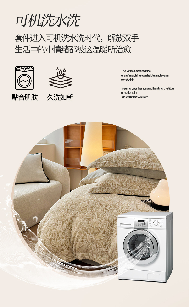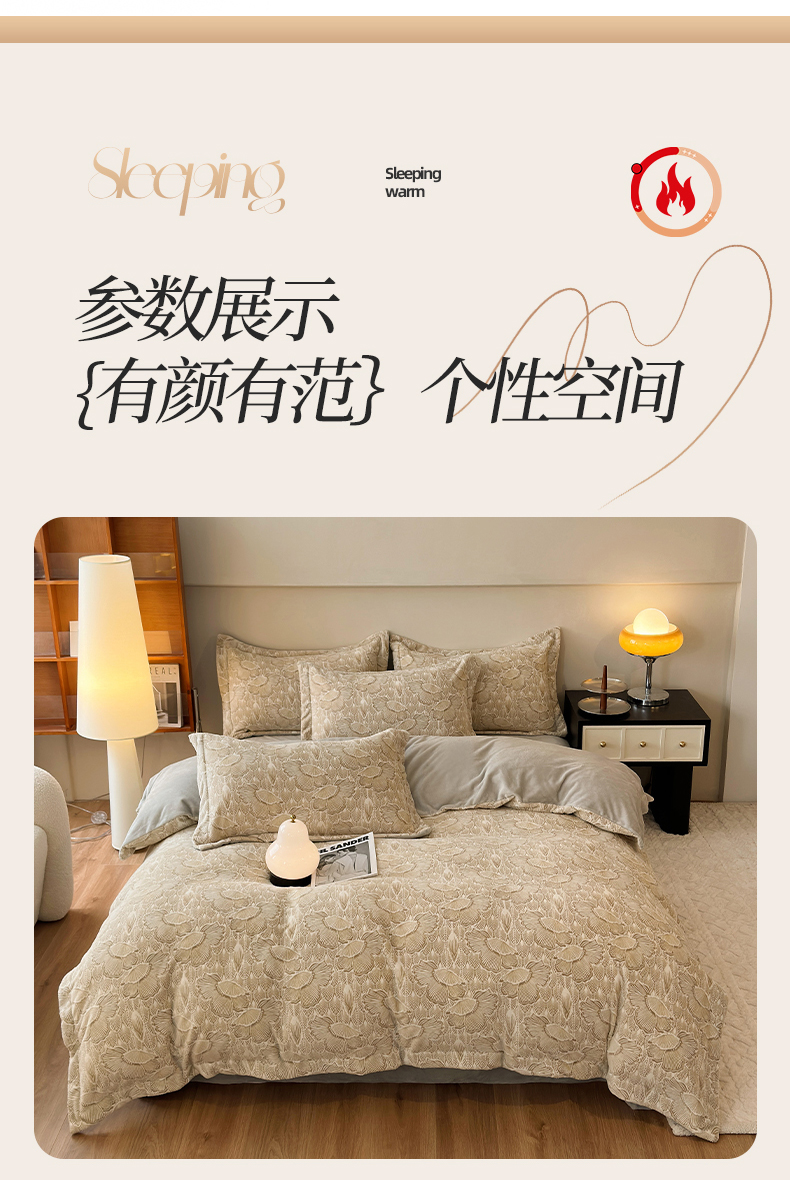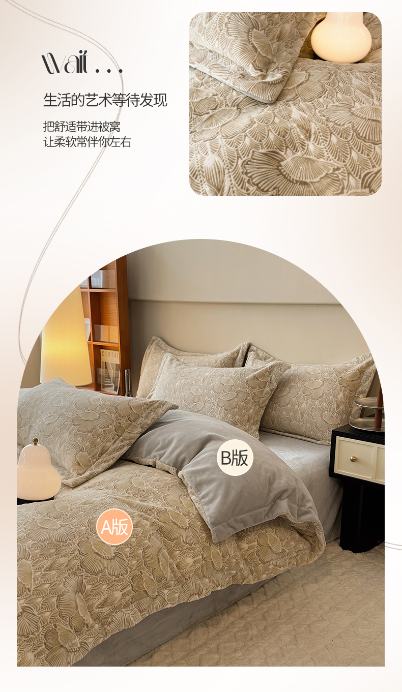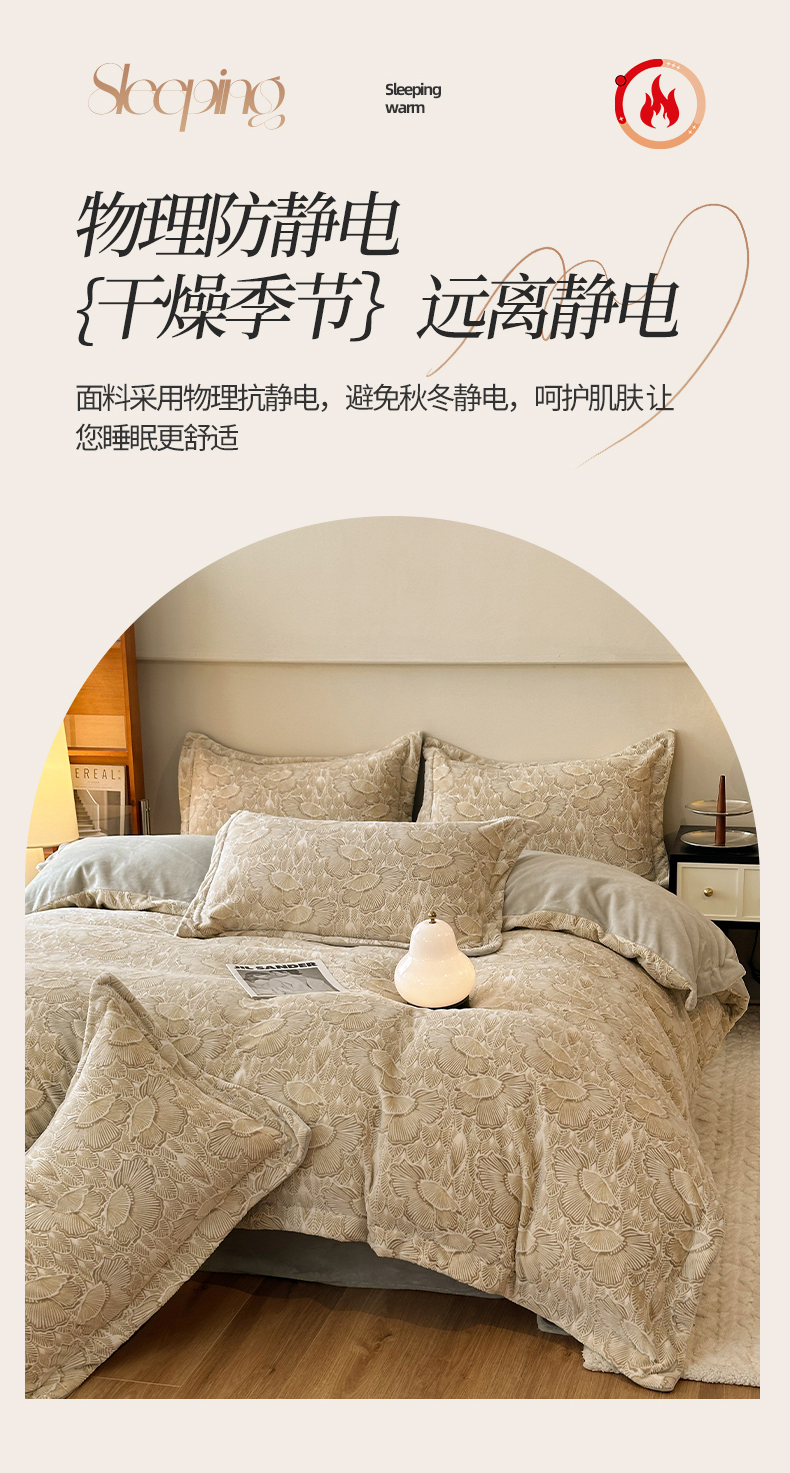米奈家居 2024新款A类牛奶雕花绒四件套-瑞丽 花漾(香槟)