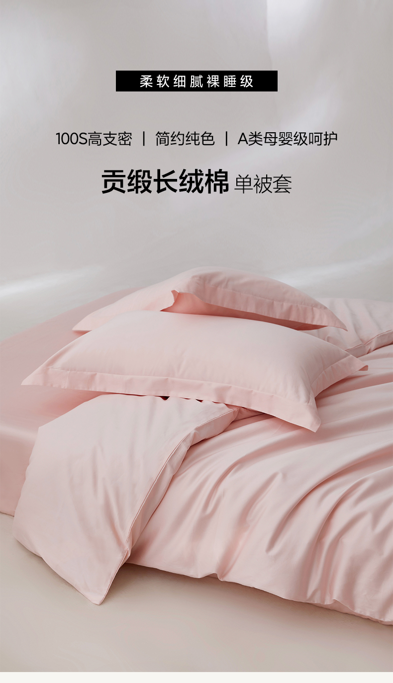 • 91家纺网 家纺一手货源 找家纺 轩和家居 2024新款A类50S贡缎长绒棉单被套系列 夏恋粉