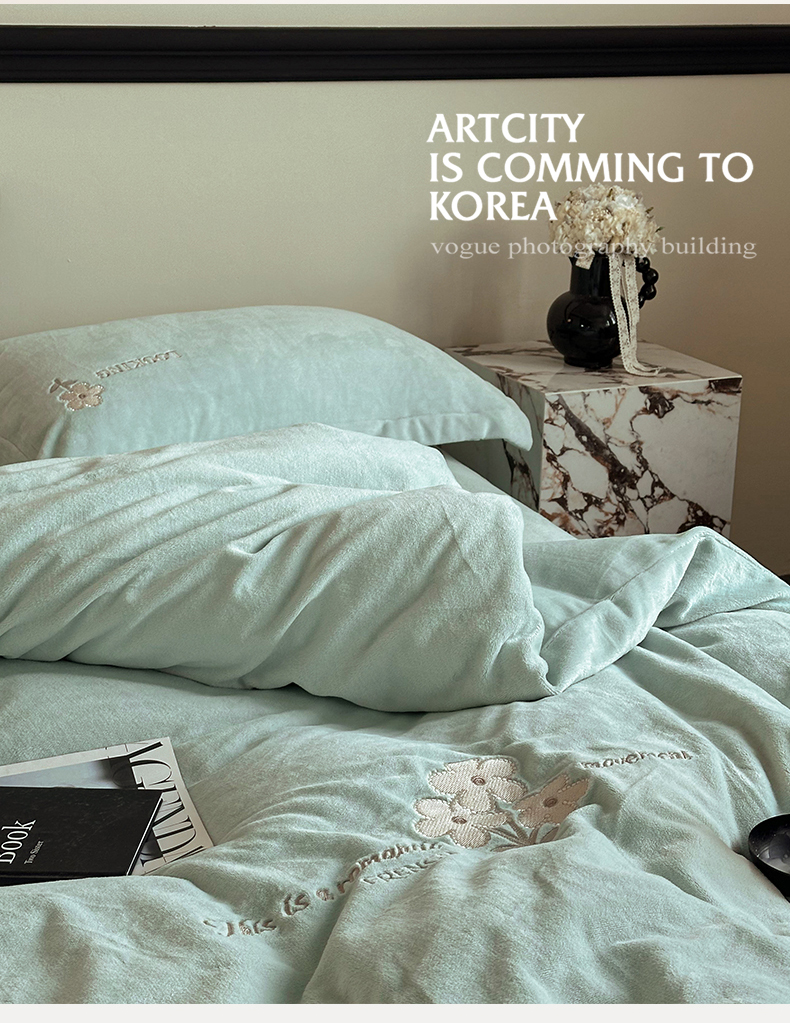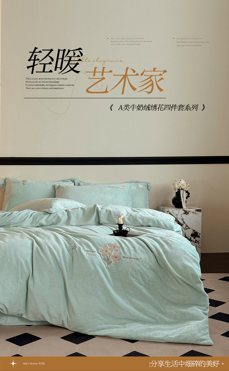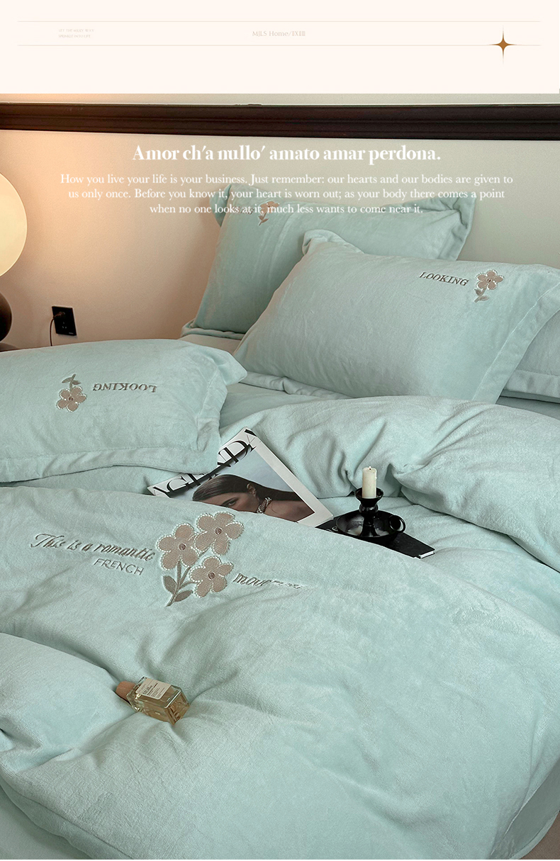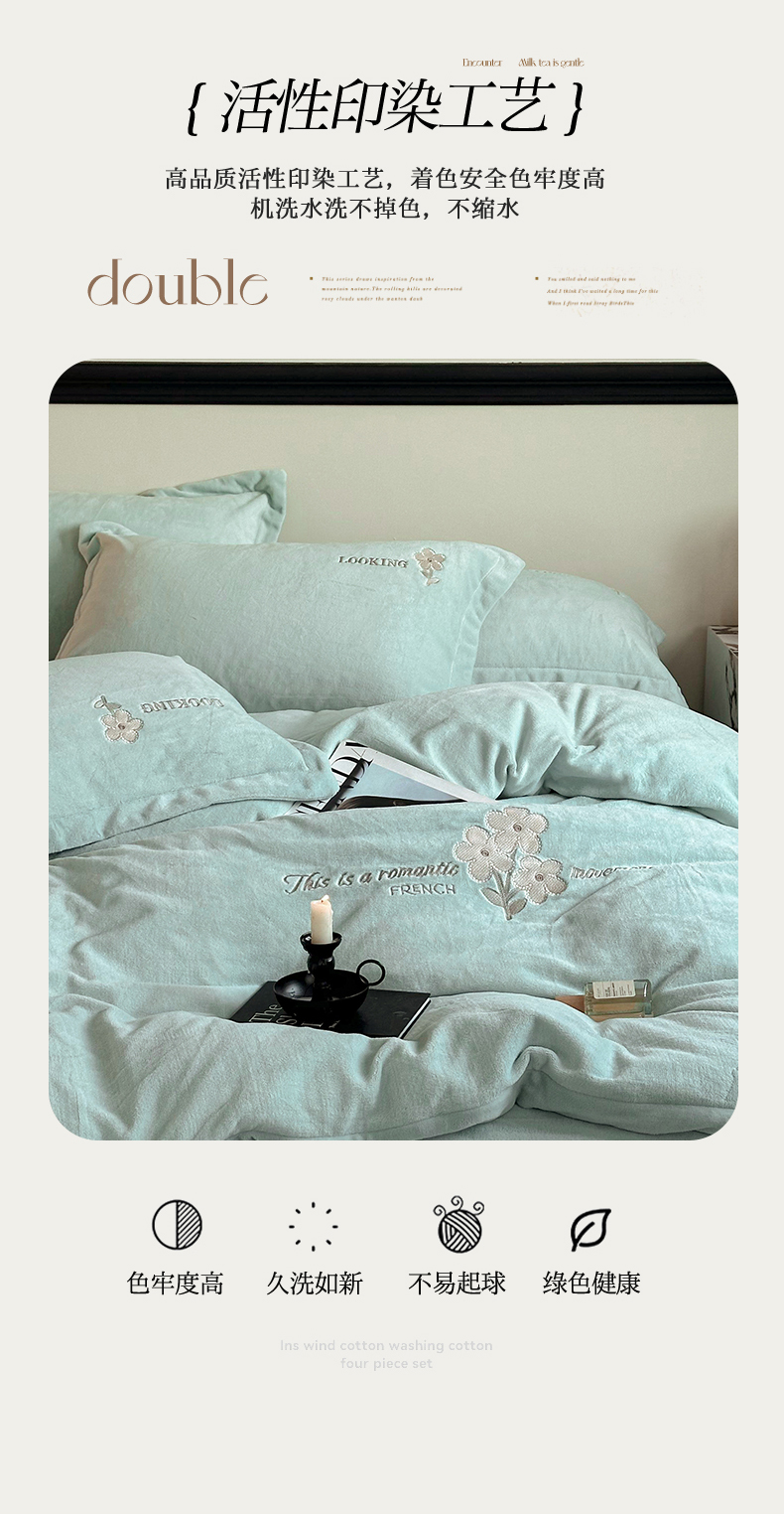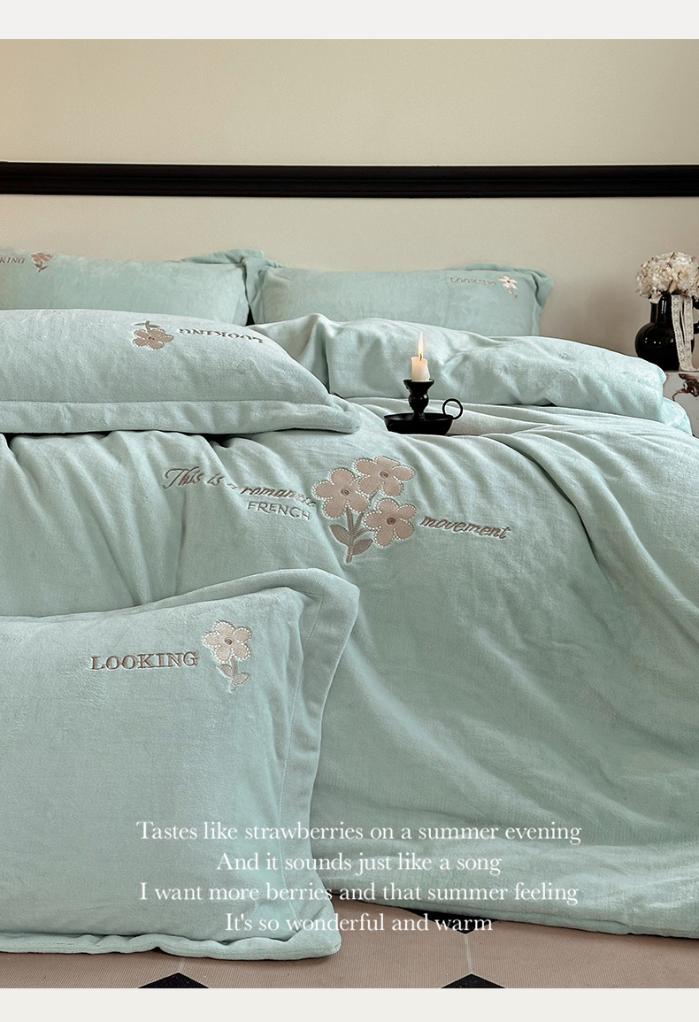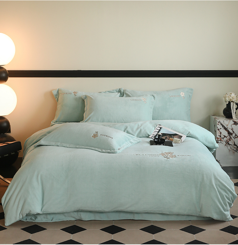 泽西家纺 2024秋冬新款加厚保暖A类小清新刺绣牛奶绒四件套-米娅 繁星蓝