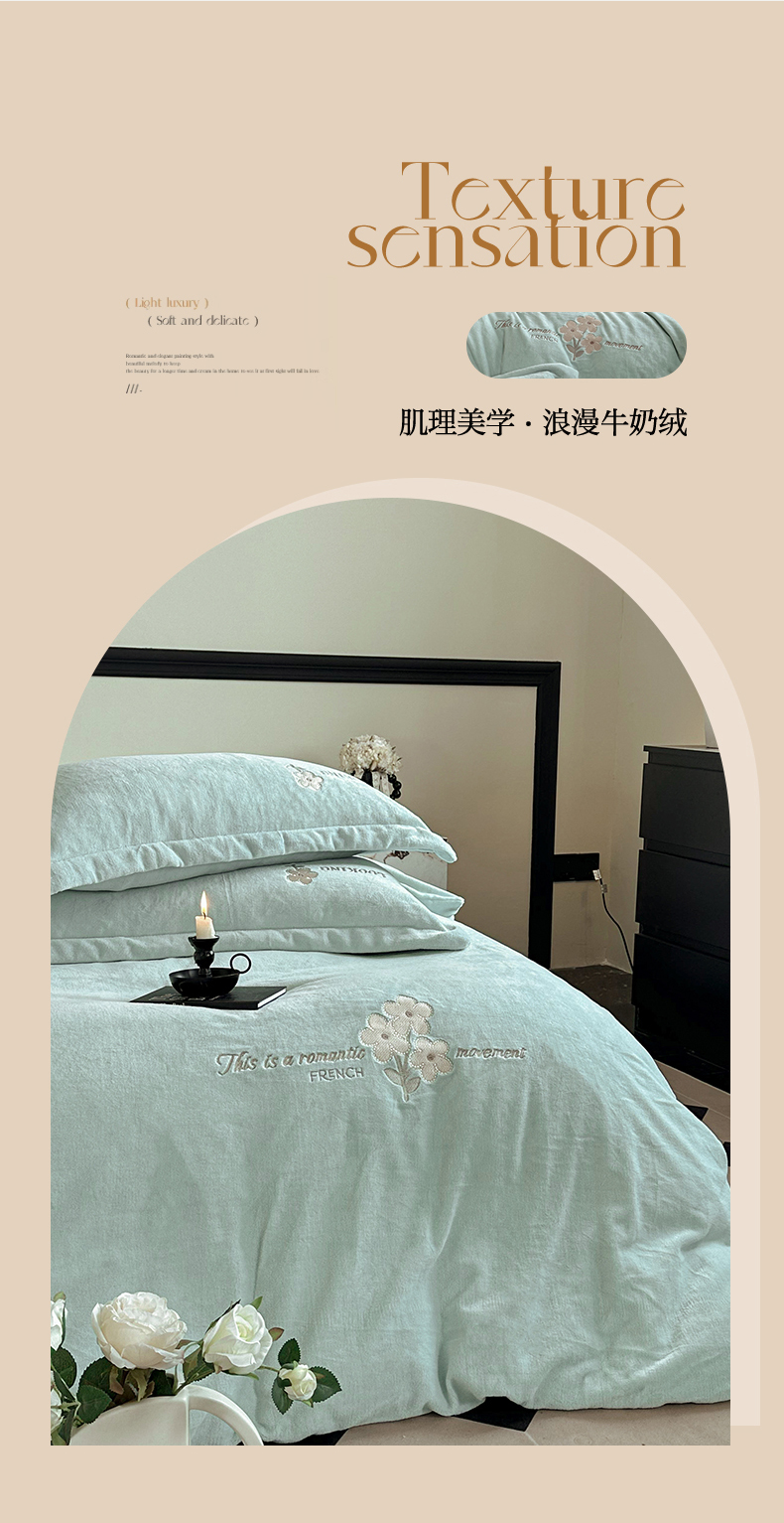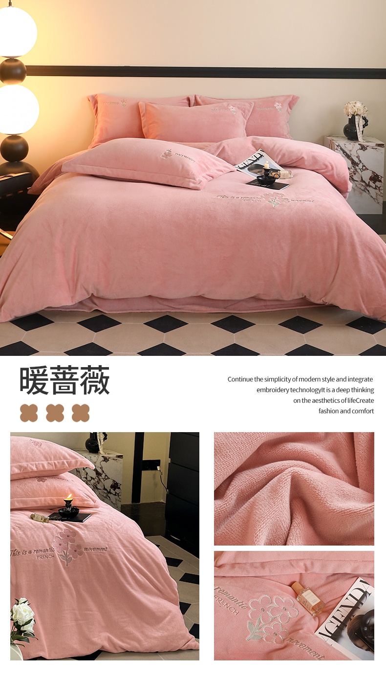 (总)泽西家纺+V17798841158发大图 2025新品秋冬加厚保暖240克奶肤绒简约风刺绣牛奶绒四件套-梵克雅宝,梵克雅宝-丁香紫,梵克雅宝-粉色,梵克雅宝-高级灰,梵克雅宝-乳白色,梵克雅宝-深卡