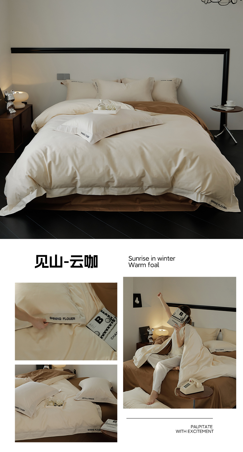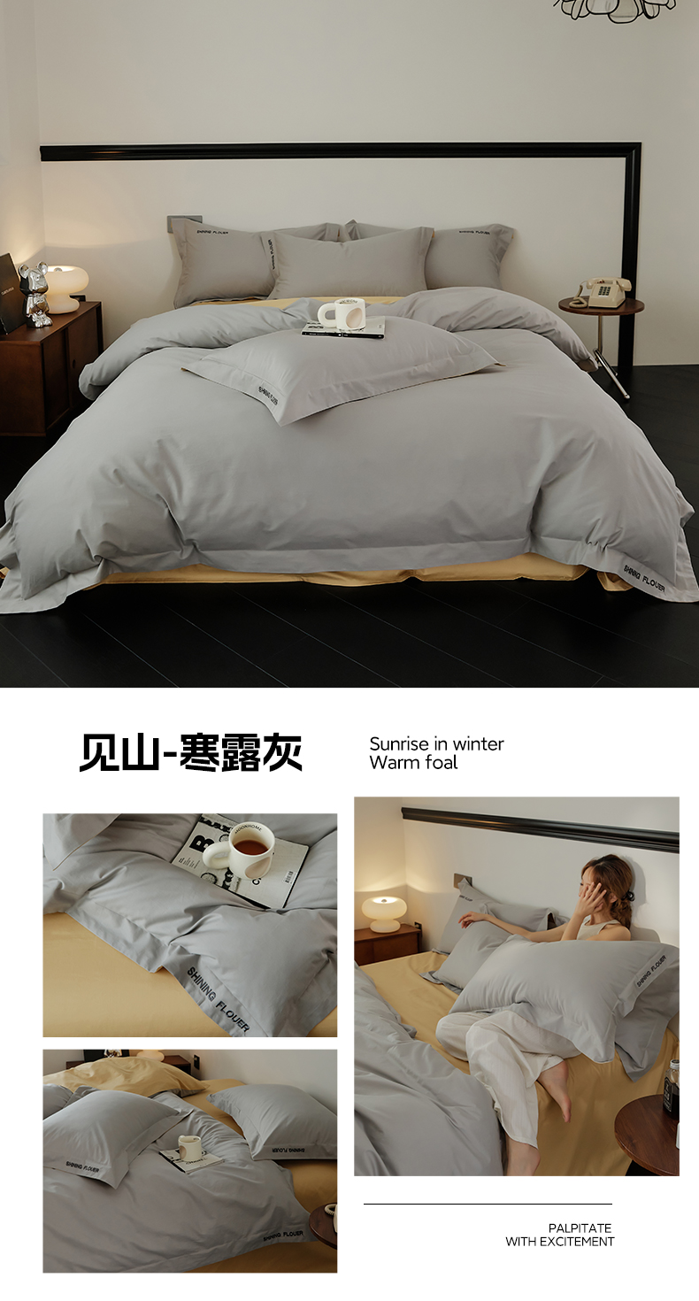 (总)EH家居 2024新款见山系列全棉简绣双拼四件套