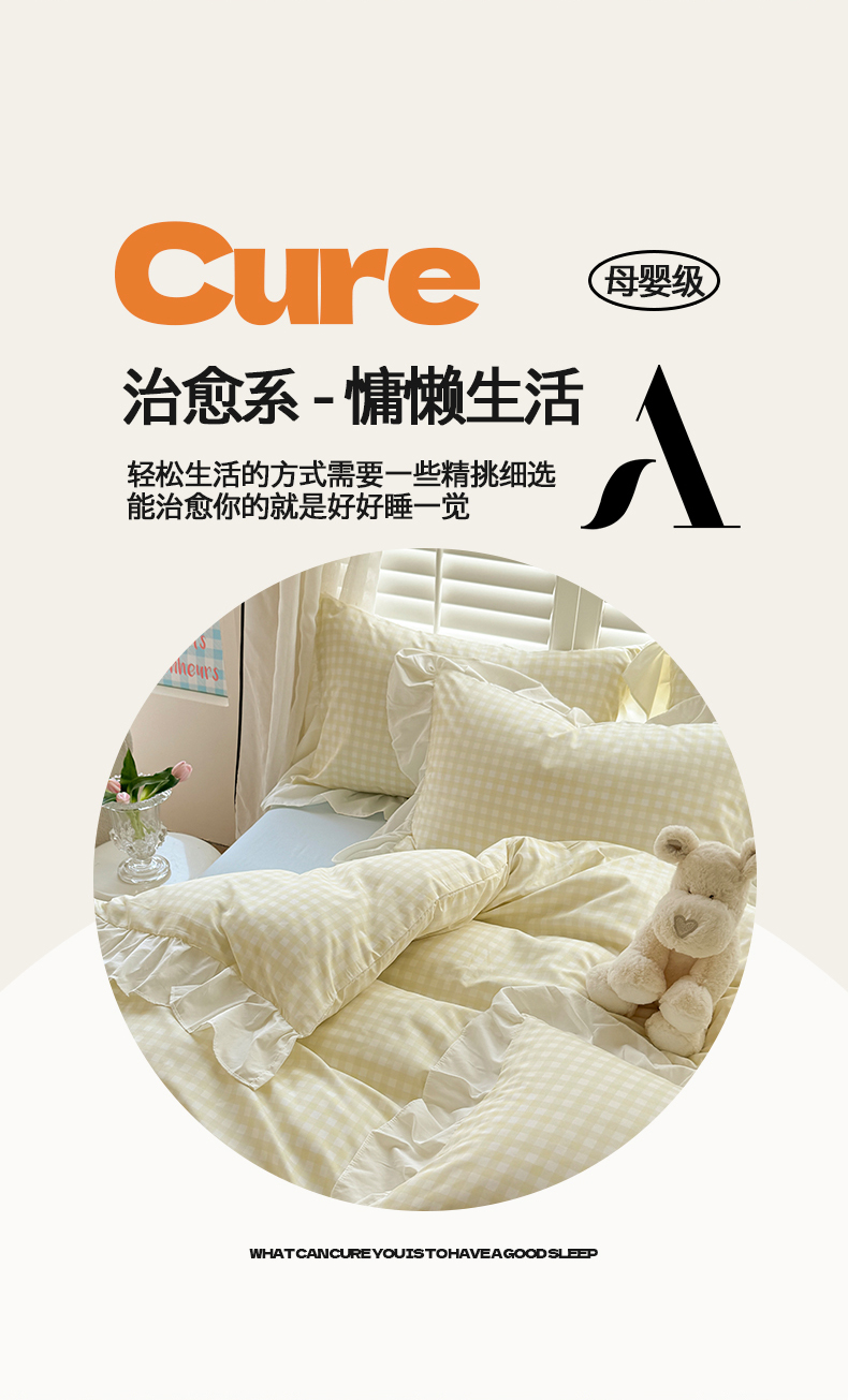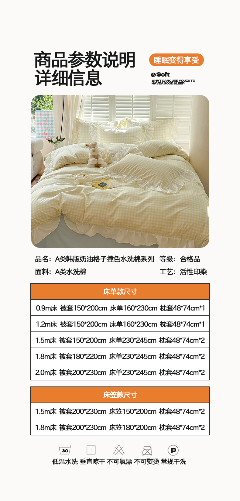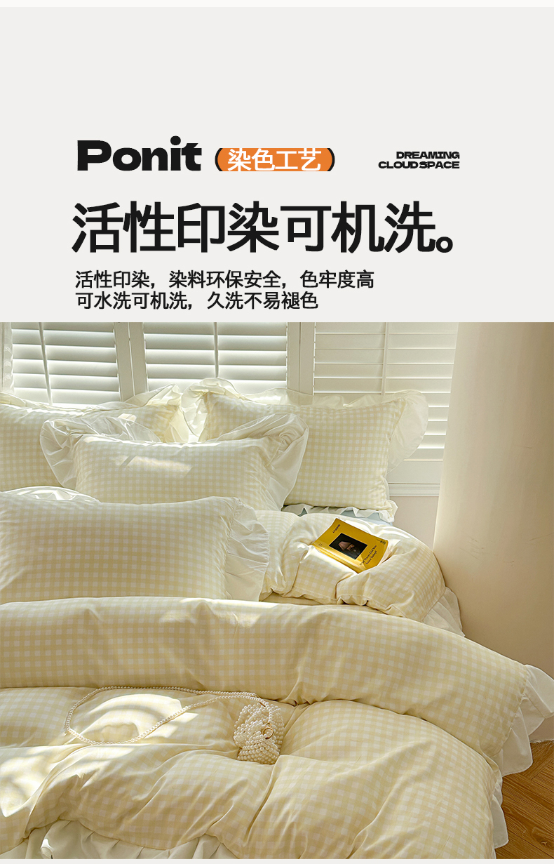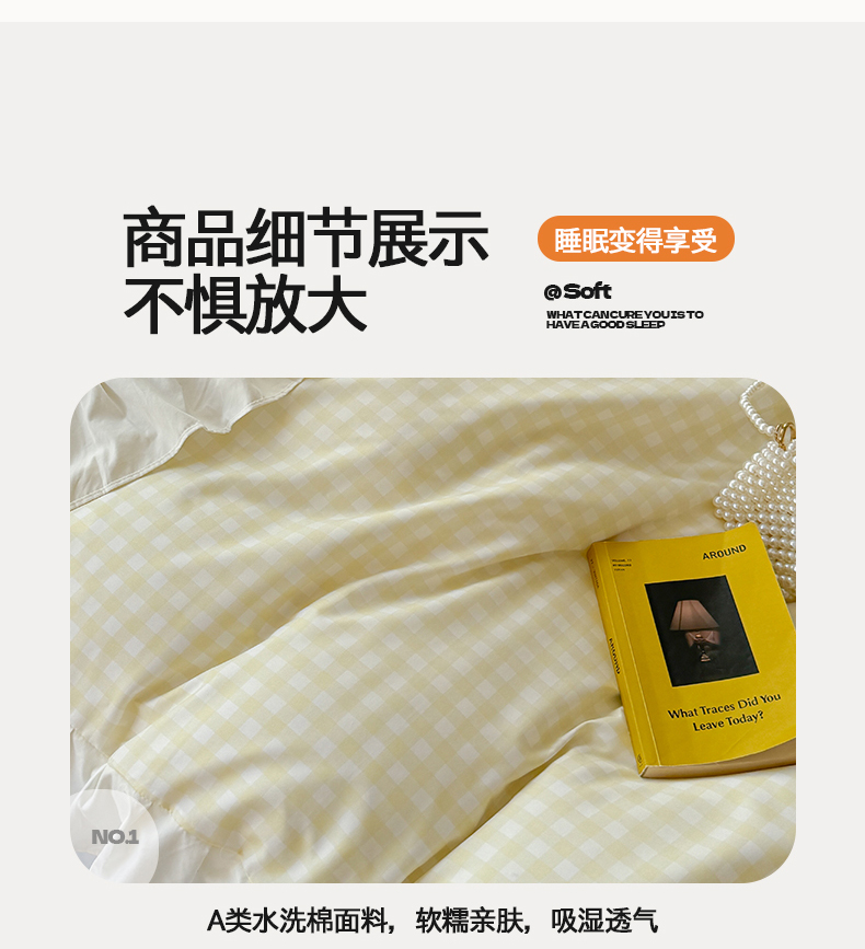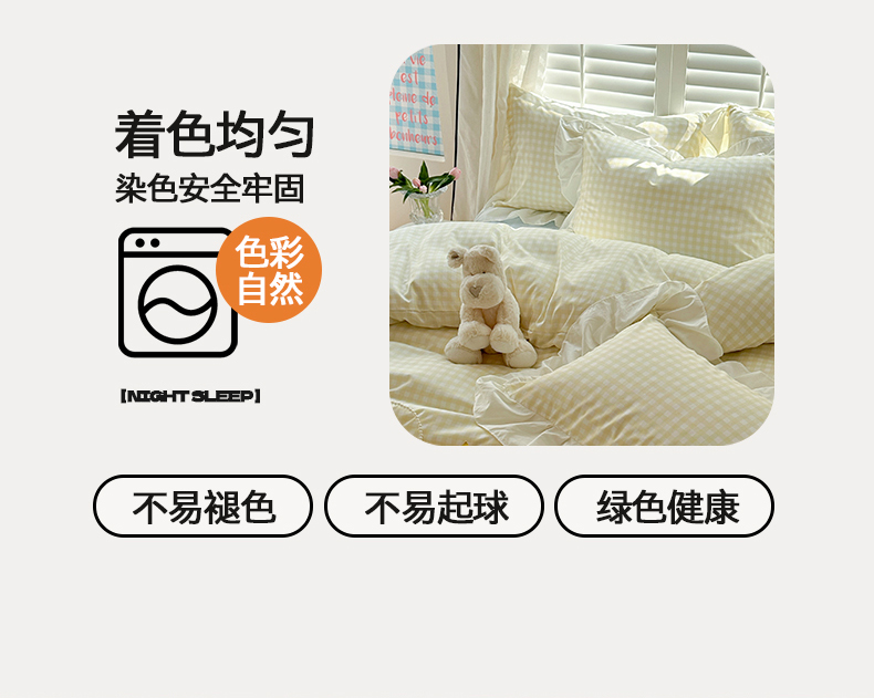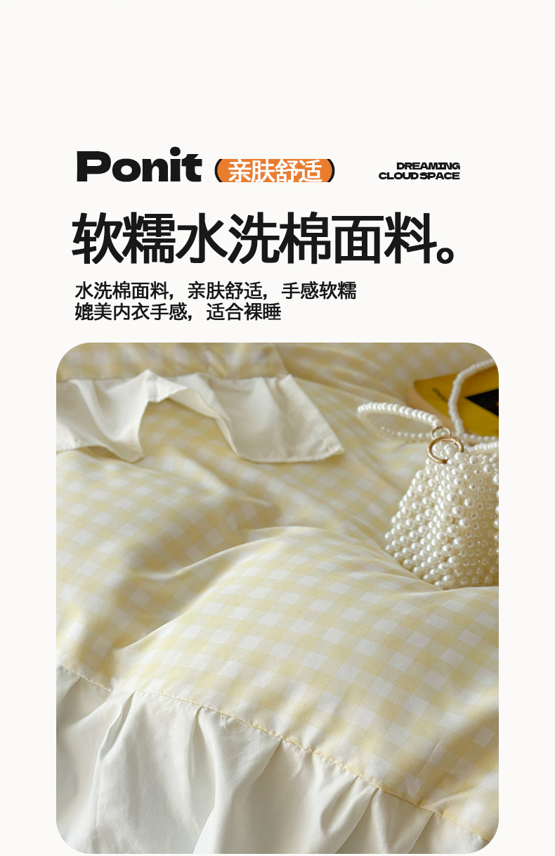 当前位置: 91家纺网 > 商品网购 > 床品套件 > 四件套 > 水洗棉四件套 > 桃心家居 2024新款A类亲肤舒适软糯云柔水洗棉化纤韩版奶油格子撞色水洗棉系列四件套 水洗棉花边-H奶黄格蓝