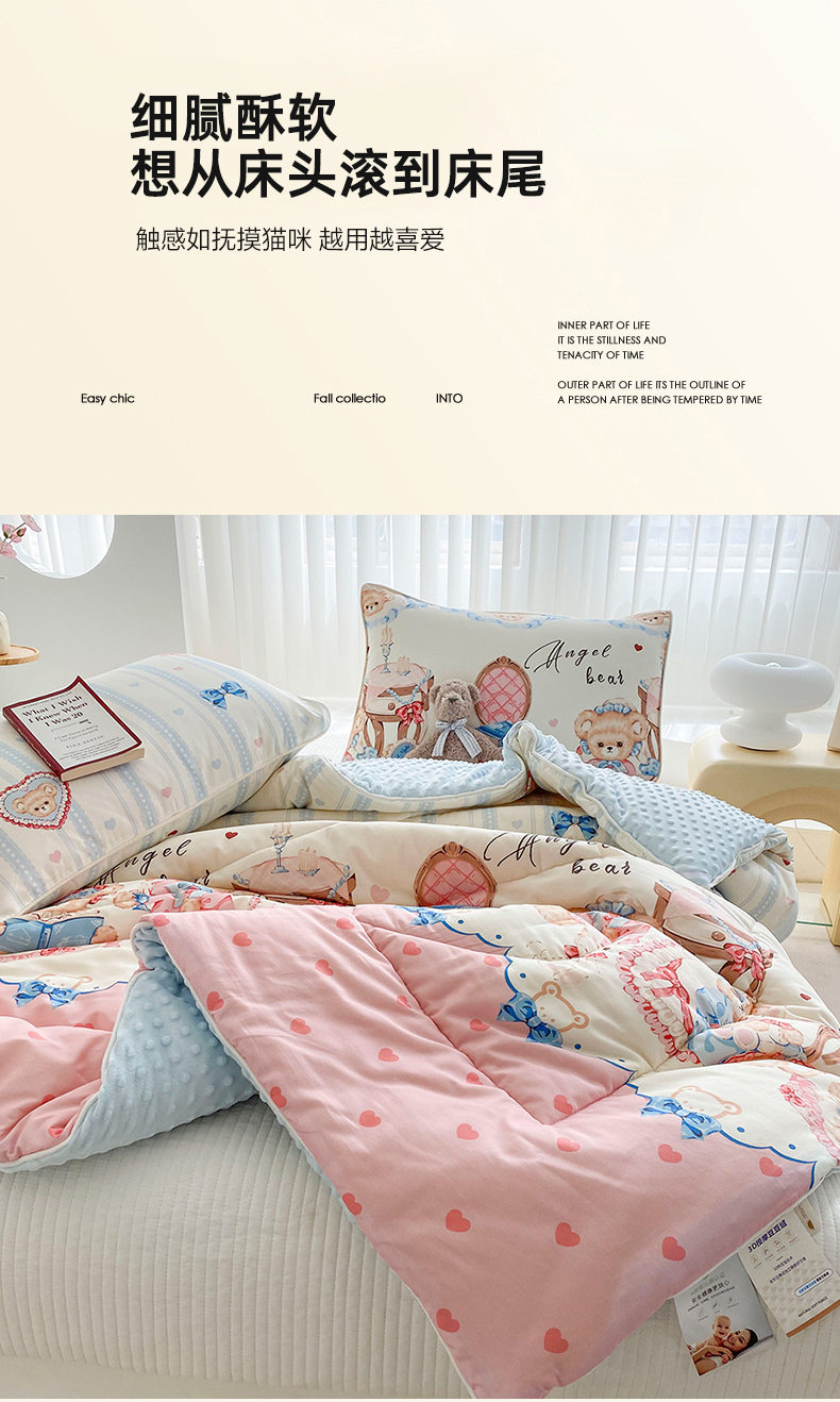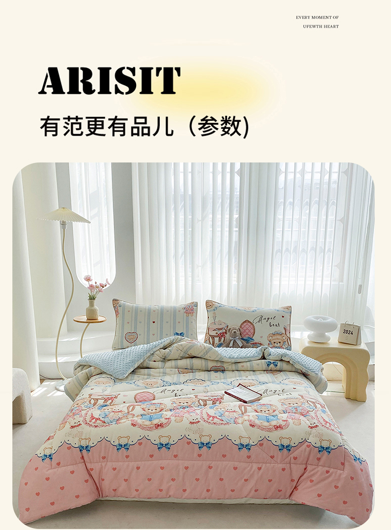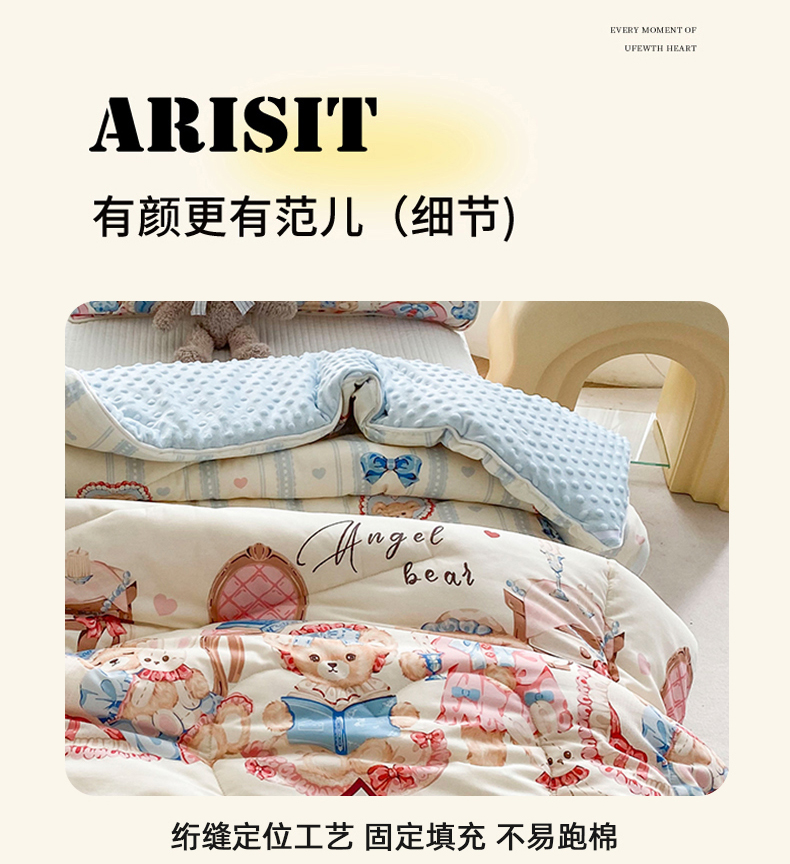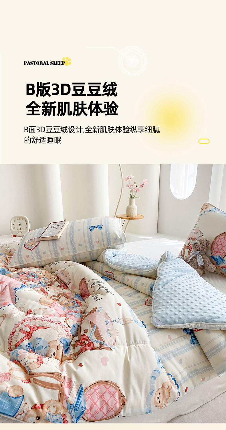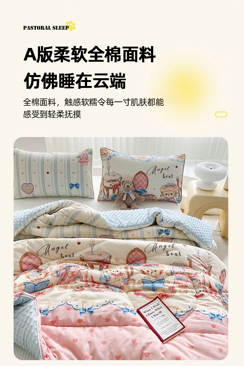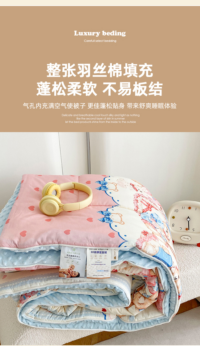 (总)青螺家纺 2025高密全棉嵌绳宝宝绒豆豆被春秋被冬被 一圈踩棉 四角不跑棉 直播,爱丽丝兔,超熊仔,花玉兔,洛丽塔 爱心熊熊,洛丽塔 开心派对,洛丽塔 甜蜜熊,绅士小熊,小樱桃,郁金香