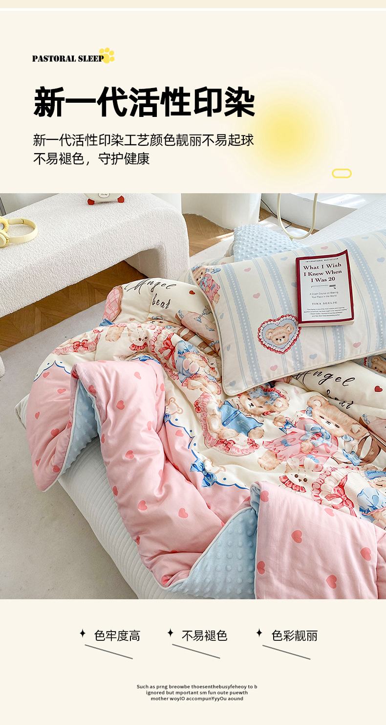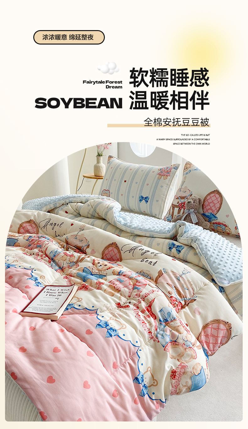 商品名称:青螺家纺 2025高密全棉嵌绳宝宝绒豆豆被春秋被冬被 一圈踩棉 四角不跑棉 直播 洛丽塔 开心派对