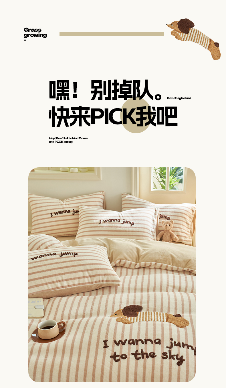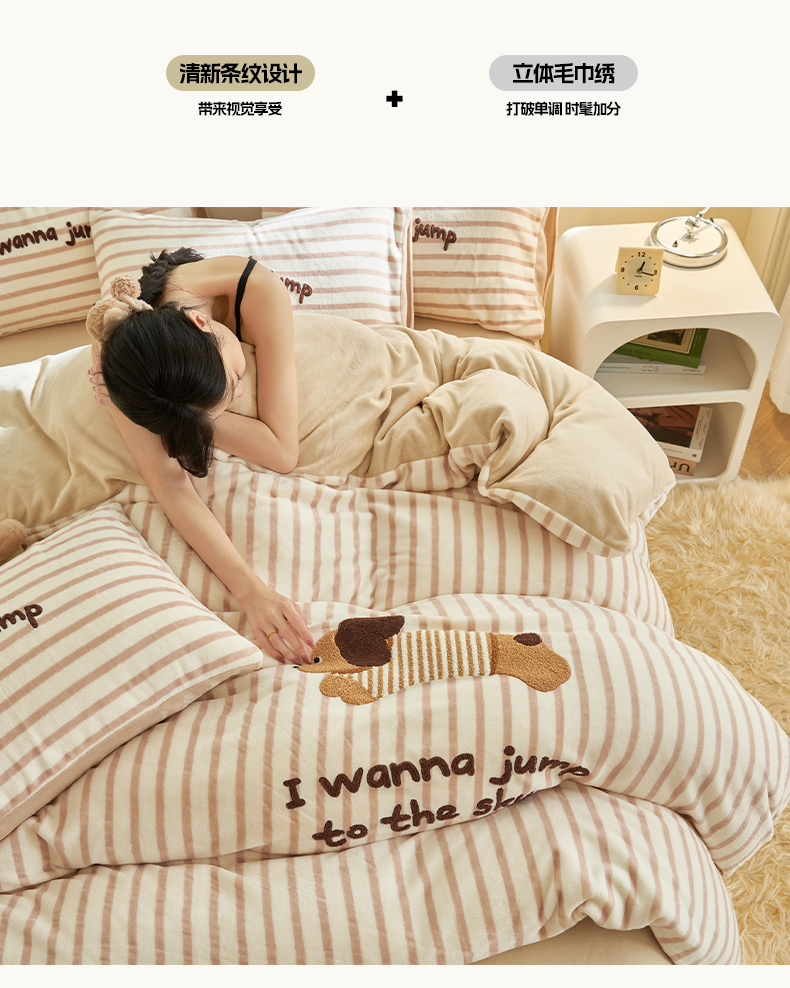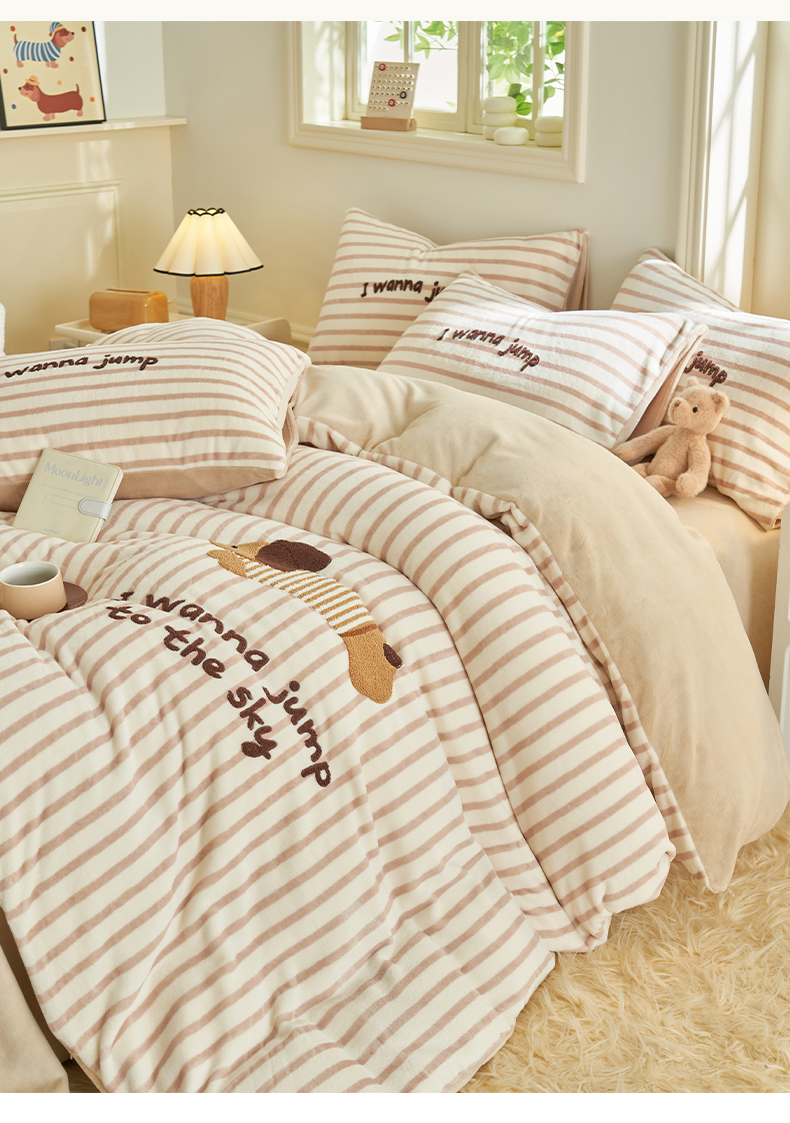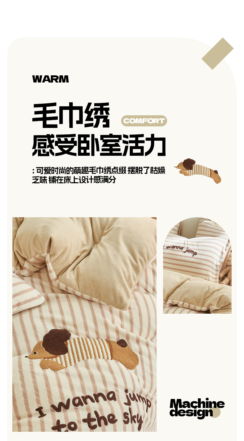 当前位置: 91家纺网 > 商品网购 > 床品套件 > 四件套 > 牛奶绒四件套 > 晨曦家纺 2024新款卡通毛巾绣牛奶绒卡通四件套 腊肠狗-奶咖