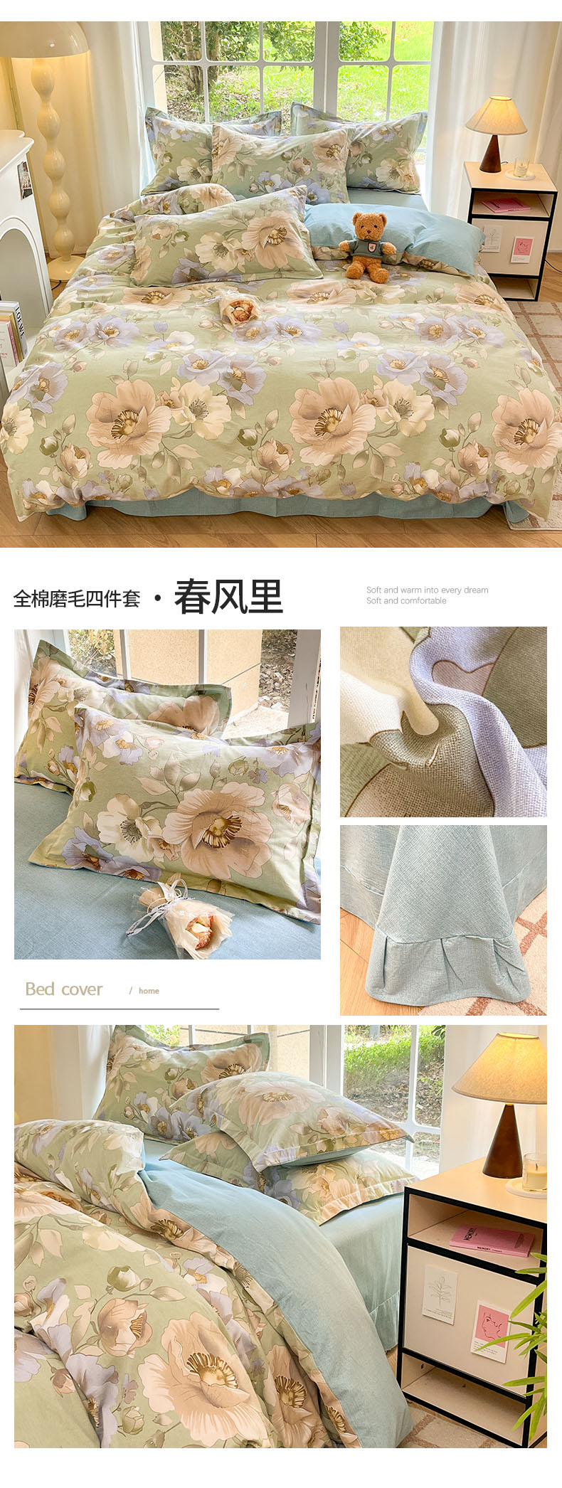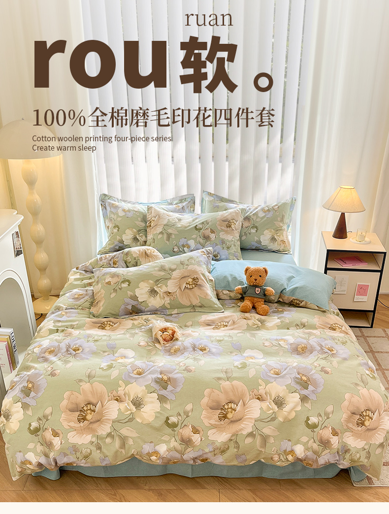 商品名称:新印象 2025新款100%全棉磨毛四件套春风里