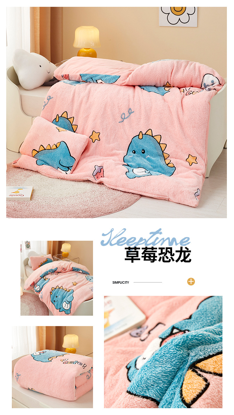 商品名称:丝涟家居 2025新款A类雪花绒牛奶绒儿童多功能可拆卸盖毯被 草莓恐龙