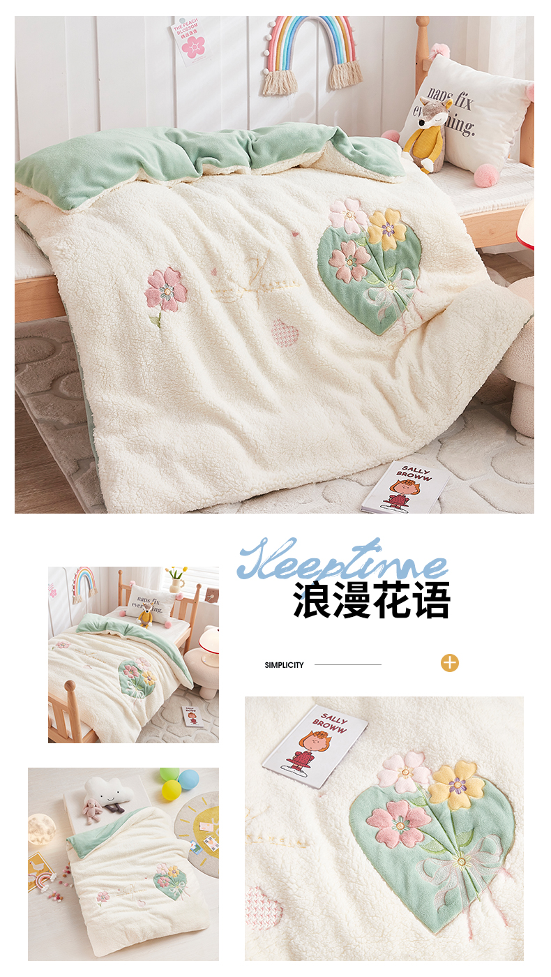 丝涟家居 2025新款羊羔绒牛奶绒卡通刺绣儿童脱卸被子 浪漫花语