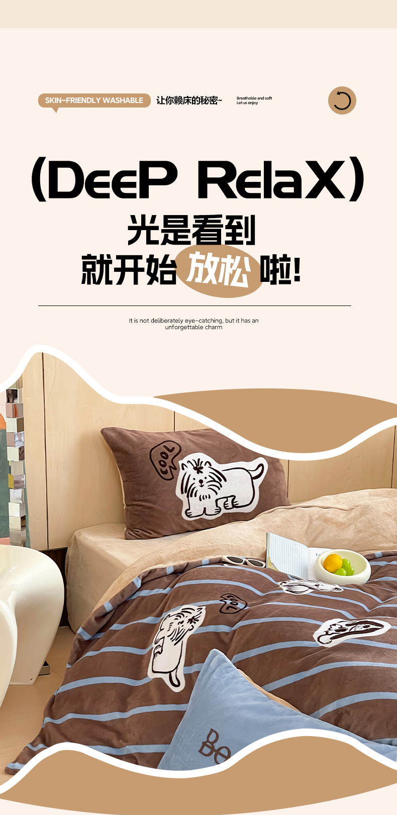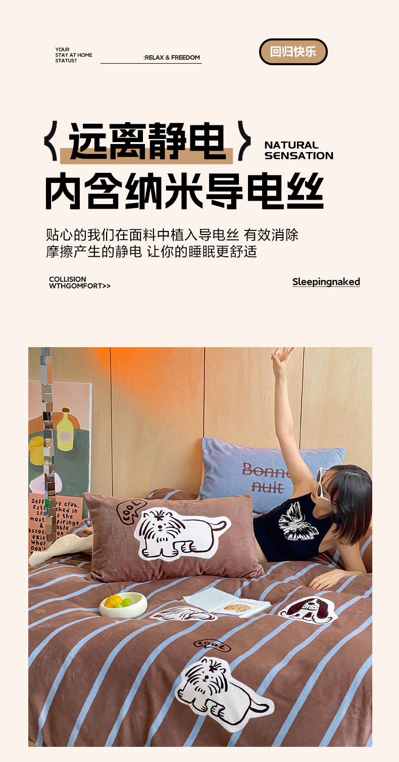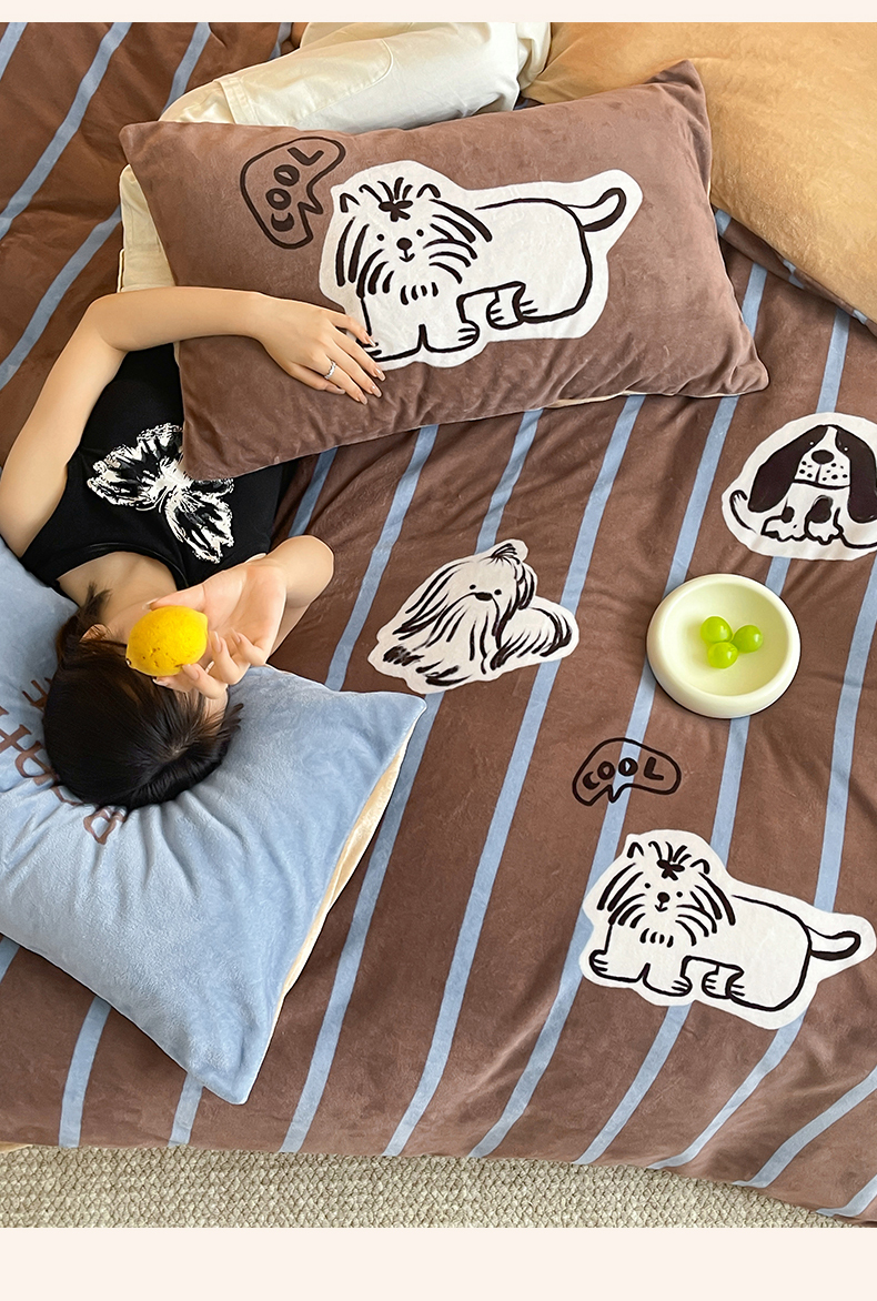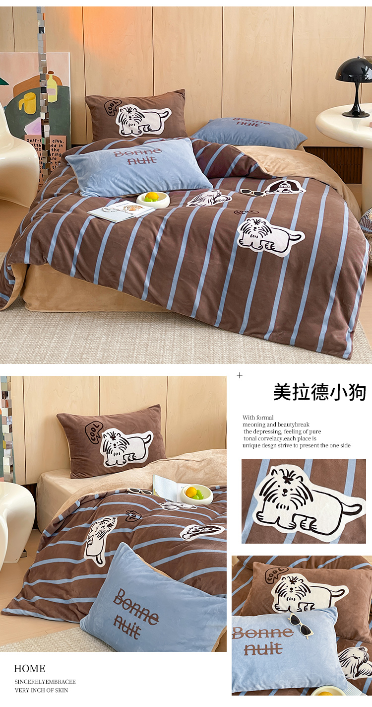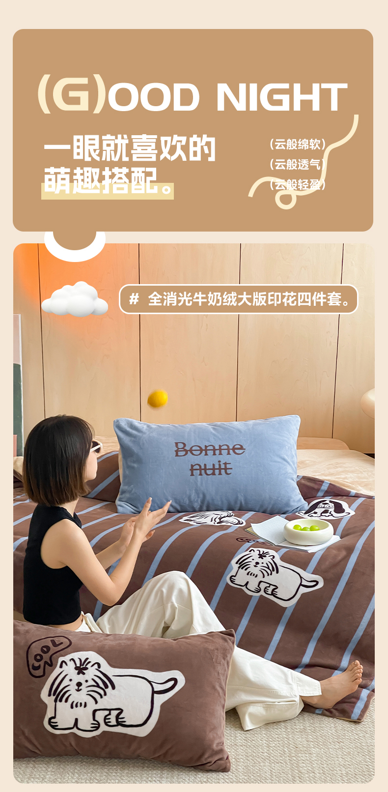 商品名称:圆岛 2024新款秋冬大版牛奶绒230全消光系列四件套 美拉德小狗