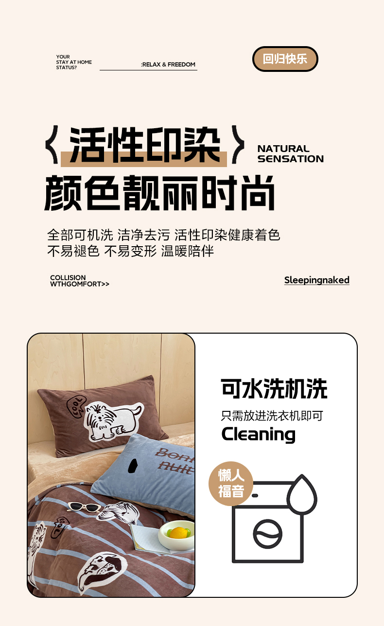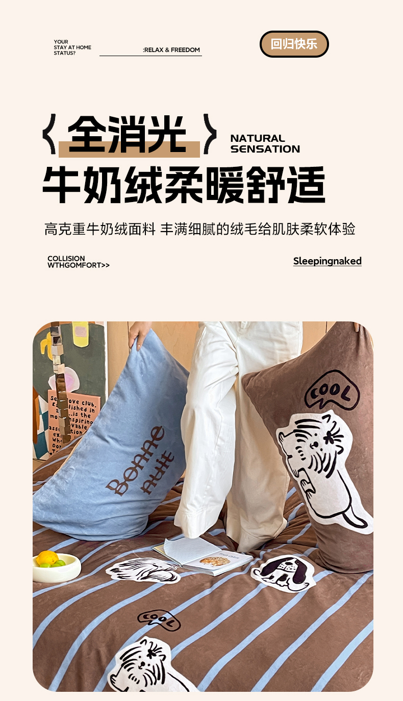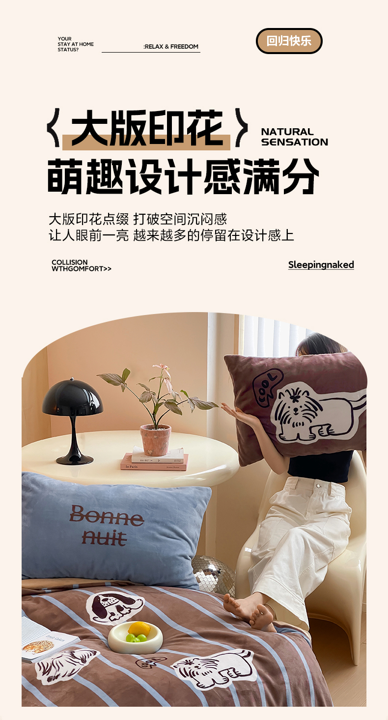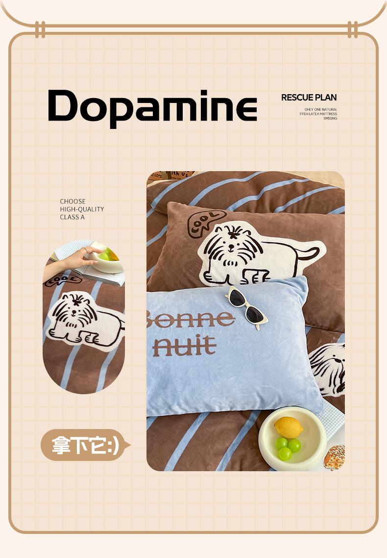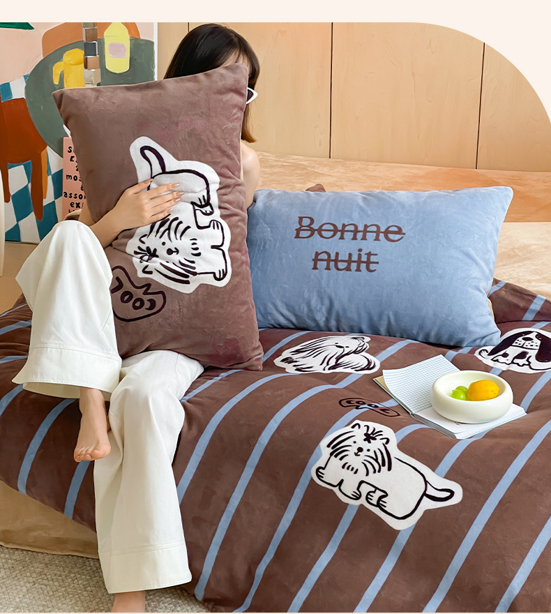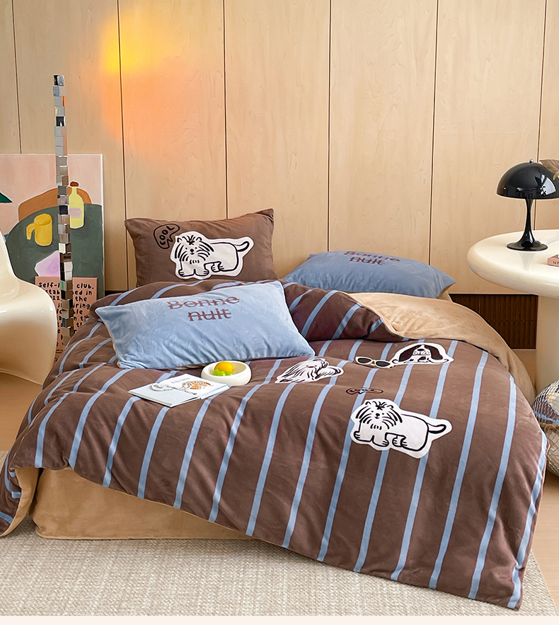 商品名称:圆岛 2024新款秋冬大版牛奶绒230全消光系列四件套 美拉德小狗