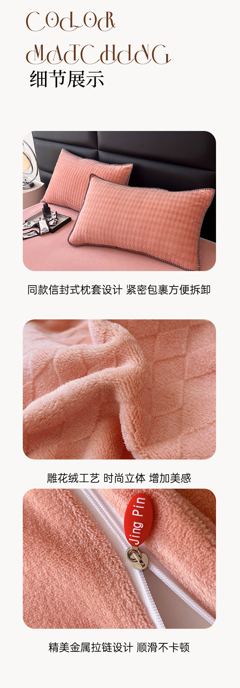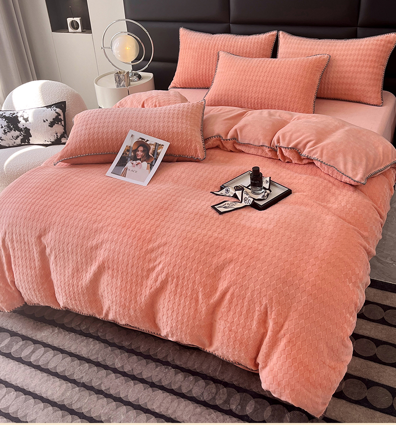 商品名称:菡宝 2024新款贝壳边无印风230g雕花绒单被套 菱形格-玉粉