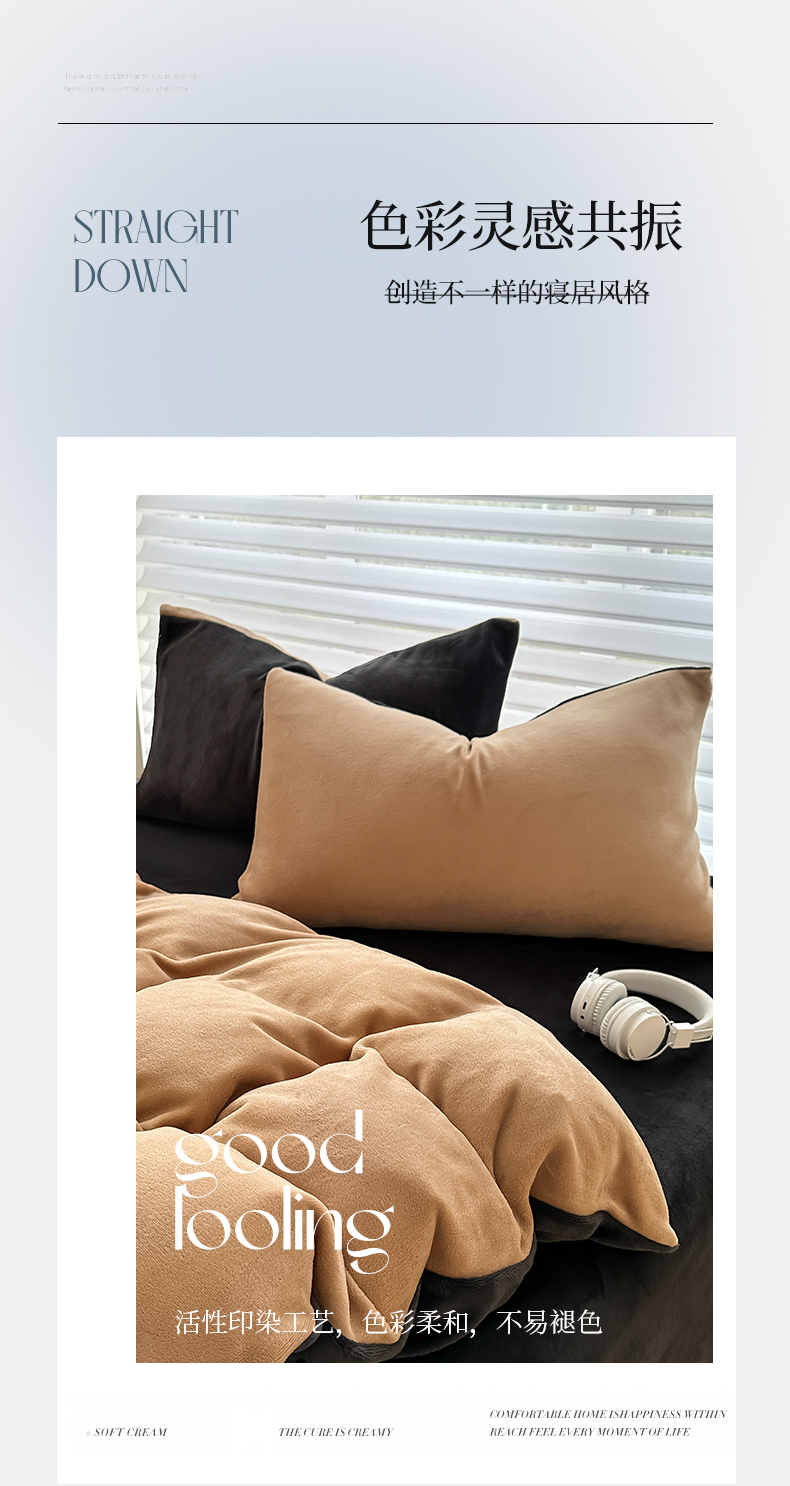 当前位置: 91家纺网 > 商品网购 > 床品套件 > 四件套 > 牛奶绒四件套 > 梓瑄家居 2024新款简约高克重秋冬加厚双拼牛奶绒四件套直播 卡其+黑灰