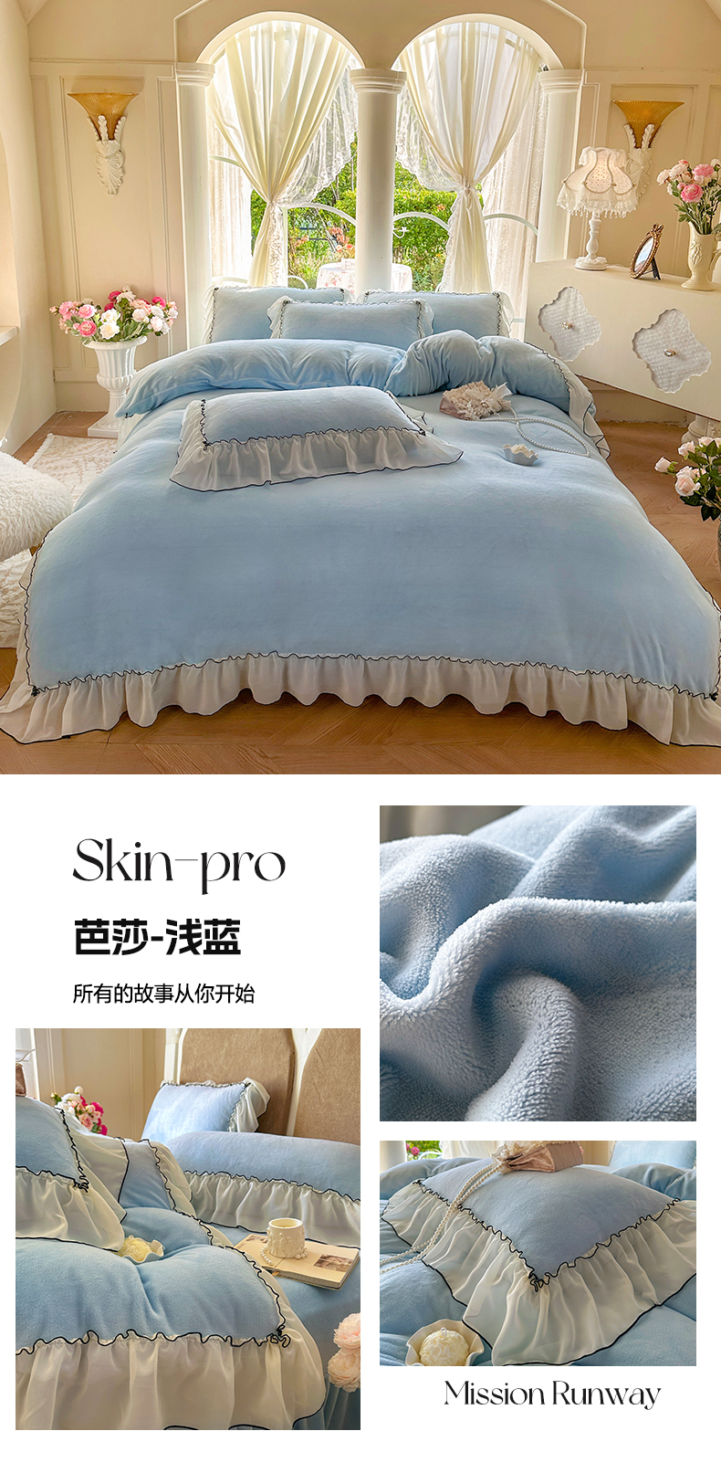 艾晶美家纺有限公司 2025新款小法试加厚牛奶绒四件套--芭莎 芭莎-浅蓝
