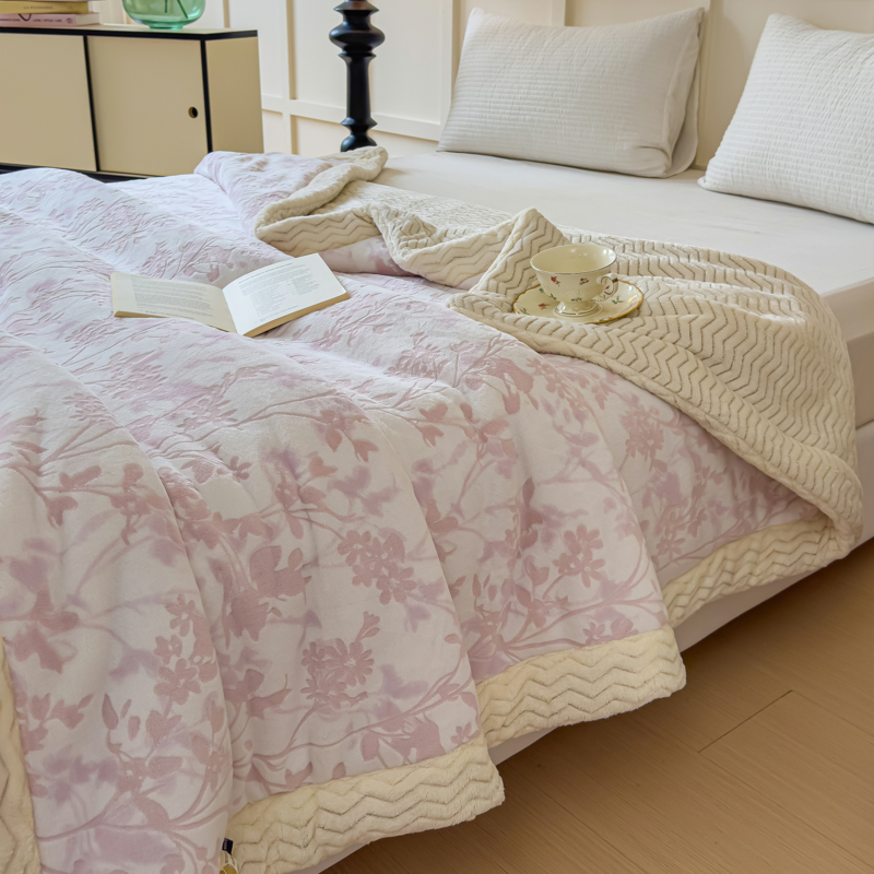 (总)金丝鸟 2024加厚240g立体雕花牛奶绒夹棉绗缝手包毛毯毯子