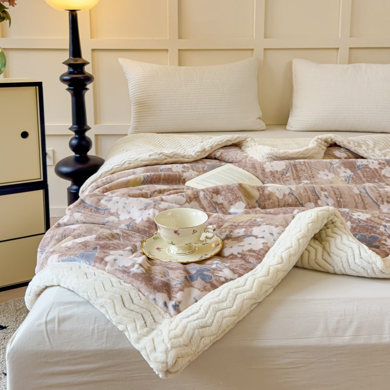 金丝鸟 2024加厚240g立体雕花牛奶绒夹棉绗缝手包毛毯毯子 蝴蝶花咖 手包毯
