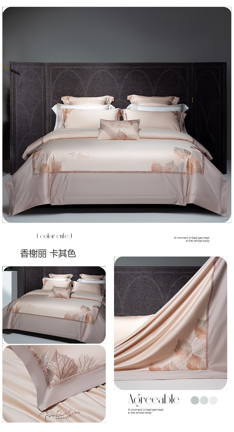 (总)诗黛尔 2025秋冬新款长绒棉刺绣香缇卡系列四件套,卡其色,落樱粉,南瓜橘,绅士灰,水晶兰,油果绿