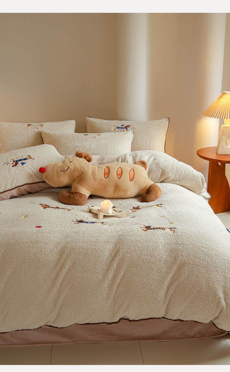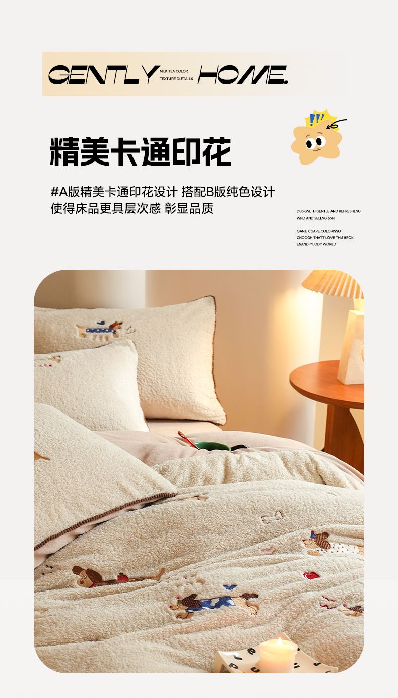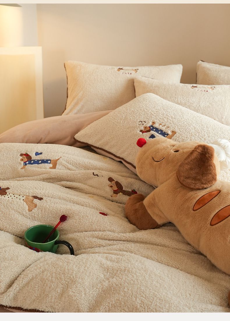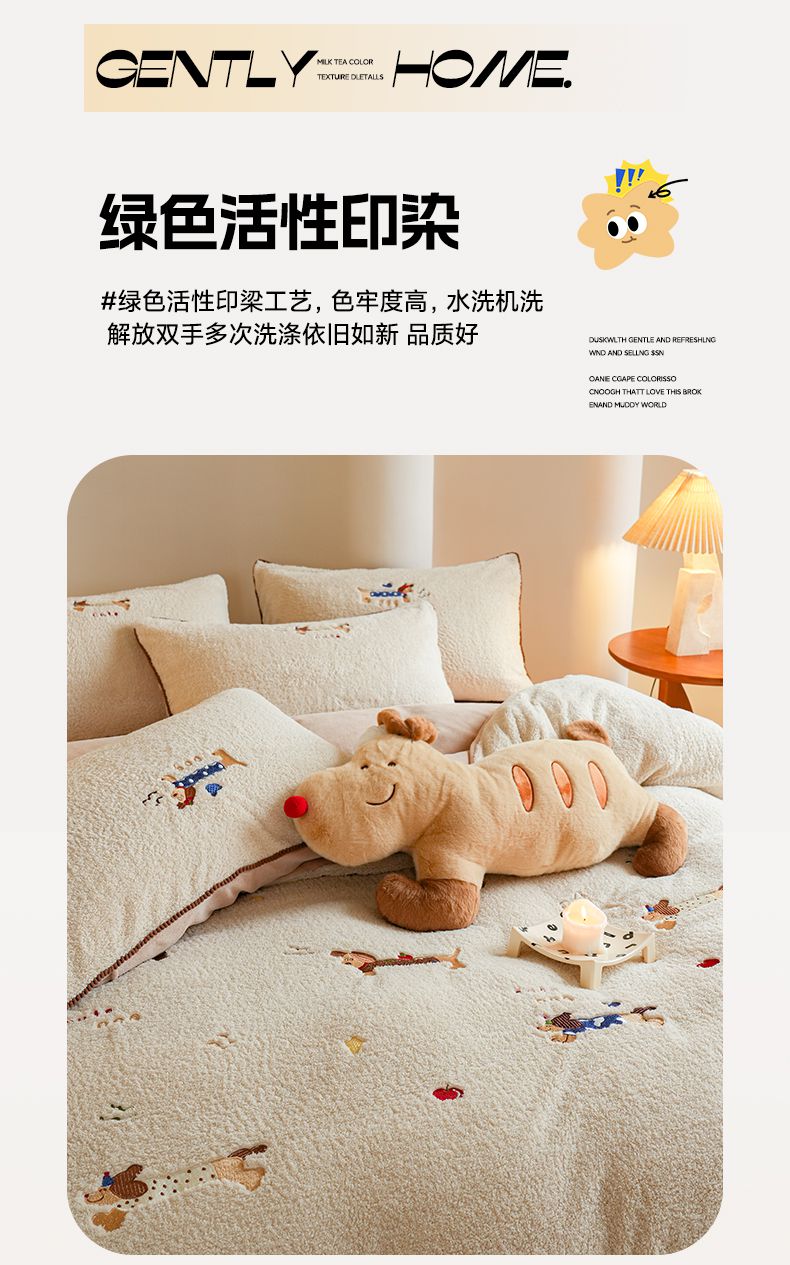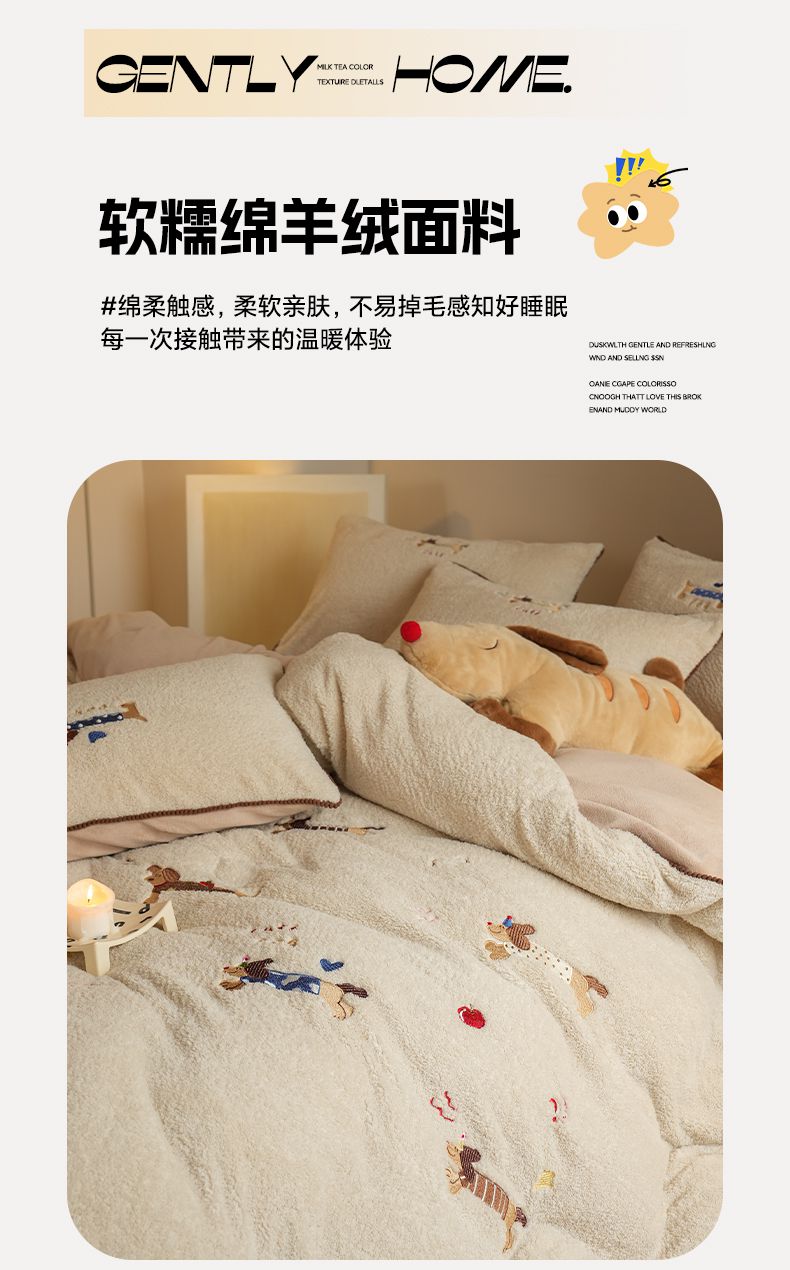 商品名称:秀色家纺 2025新款少女心高克重绵羊绒牛奶绒床上四件套冬季毛巾绣被套原创卡通ins风 腊肠Dog