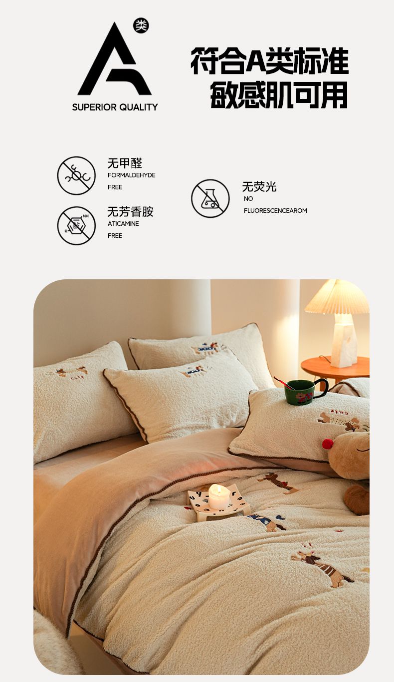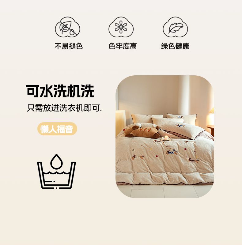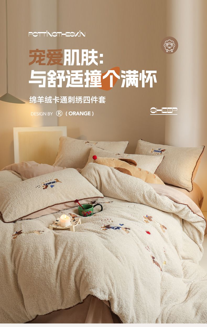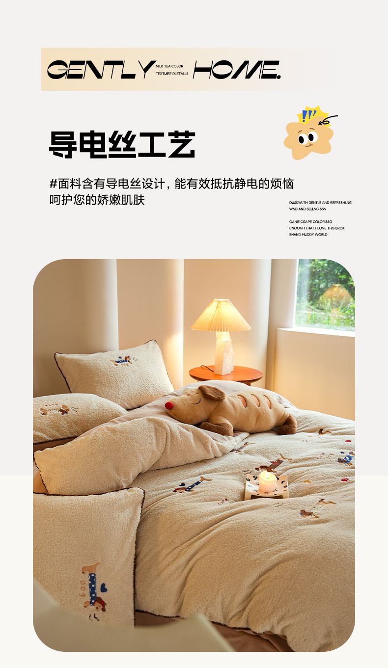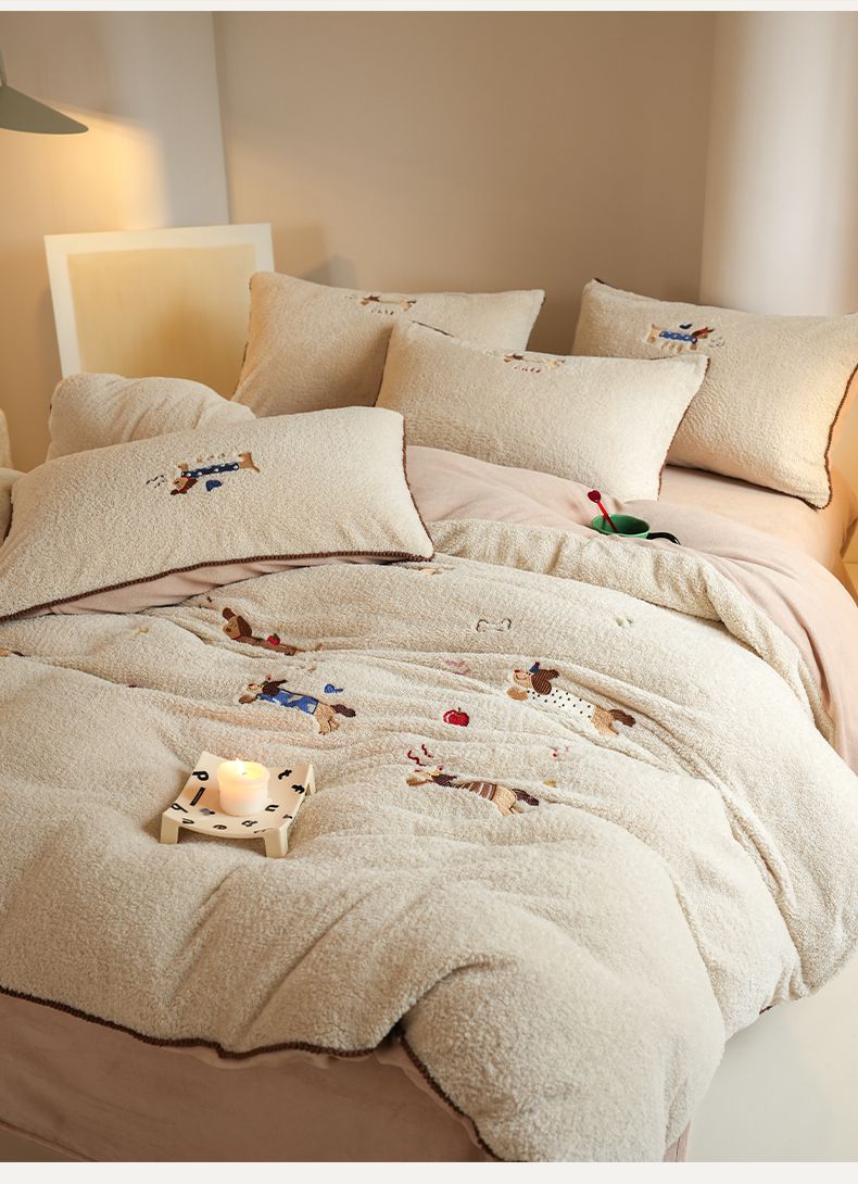 商品名称:秀色家纺 2025新款少女心高克重绵羊绒牛奶绒床上四件套冬季毛巾绣被套原创卡通ins风 腊肠Dog