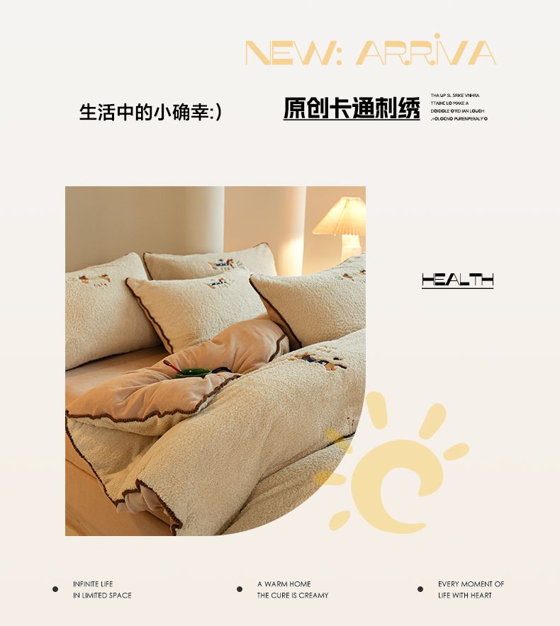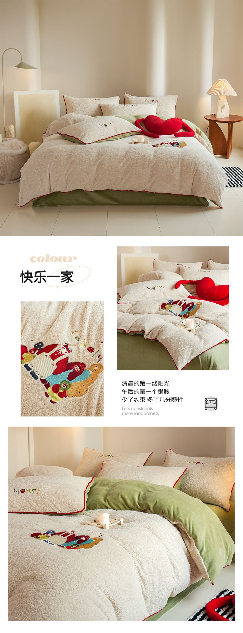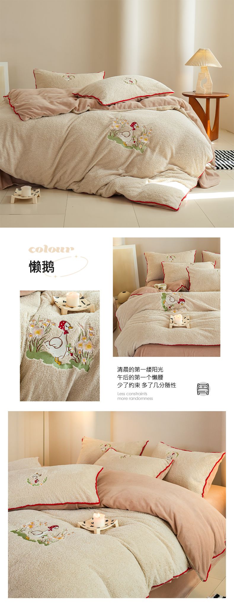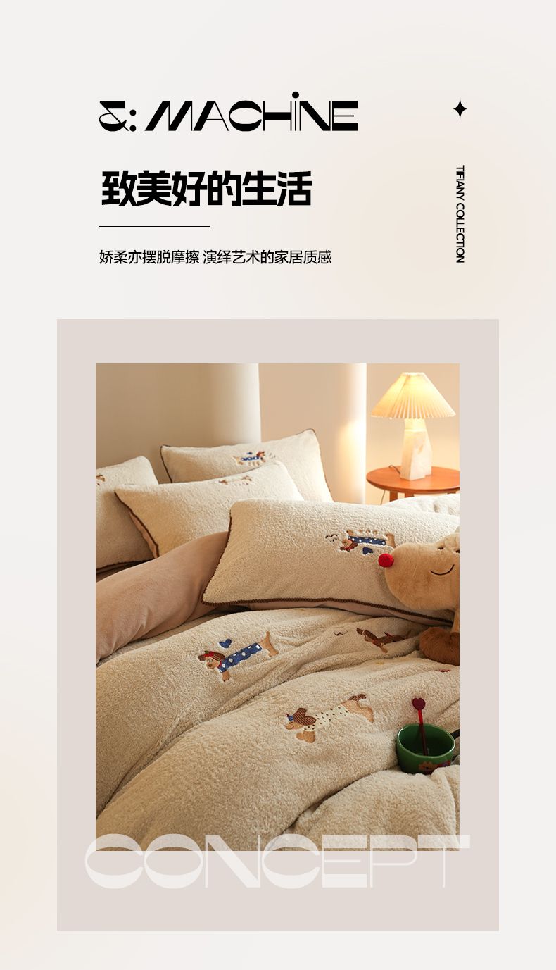 商品名称:秀色家纺 2025新款少女心高克重绵羊绒牛奶绒床上四件套冬季毛巾绣被套原创卡通ins风 腊肠Dog