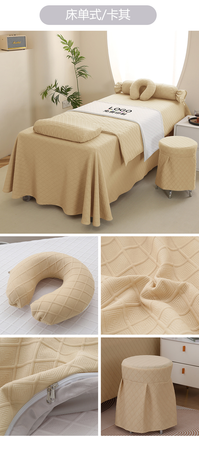 琪宝阁 2024新款莫代尔针织棉美 容床罩套件-华夫格 卡其