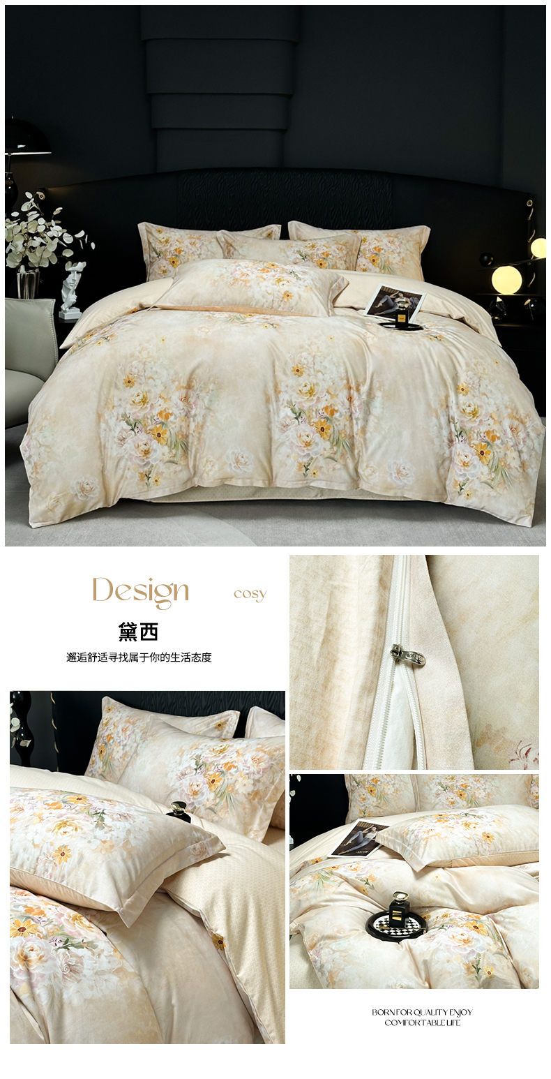 商品名称:一比一家纺 2024新款莱赛尔纤维新疆棉陶瓷磨毛秋冬温感四件套亲肤保暖 黛西