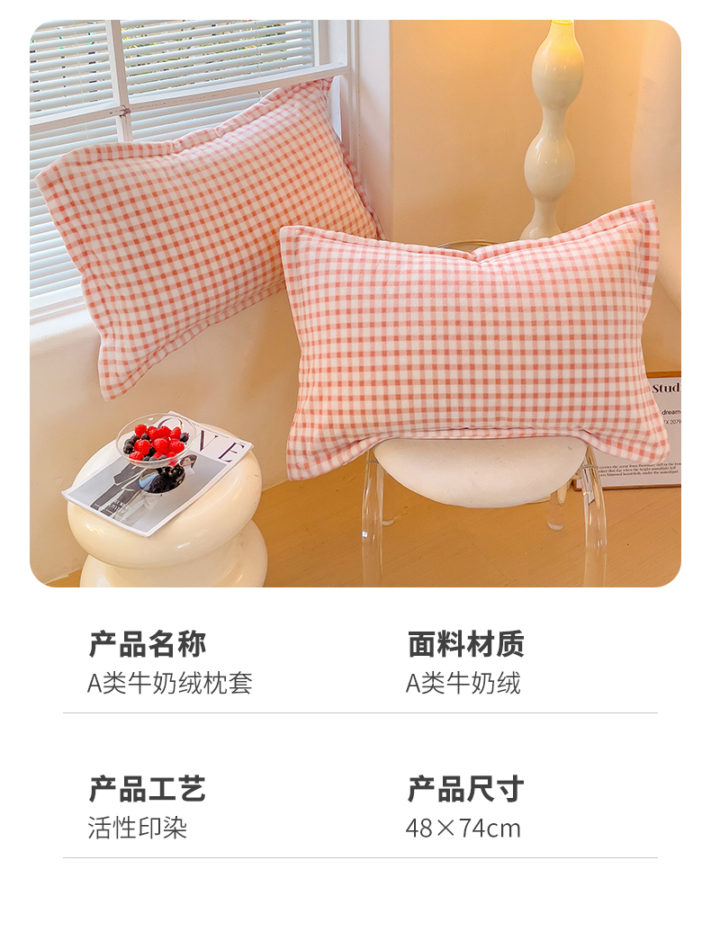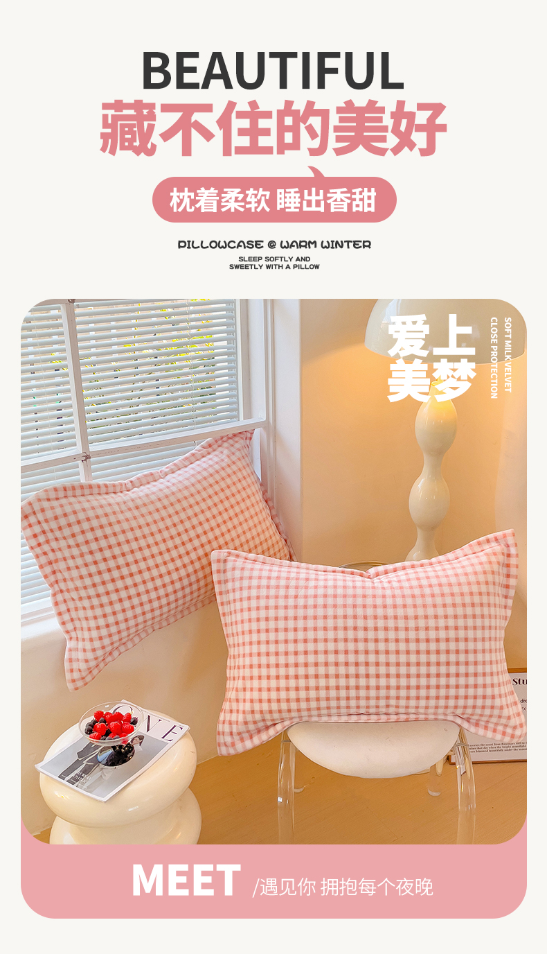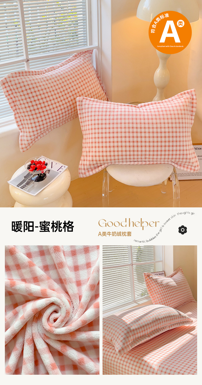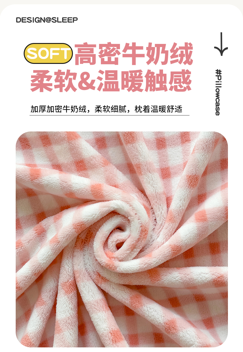 商品名称:恬澳家纺 2025新款暖阳牛奶绒枕套 暖阳-蜜桃格