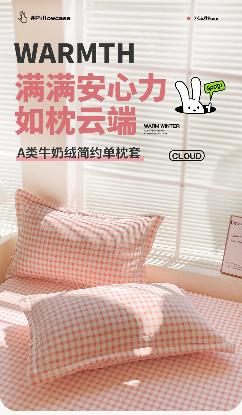 恬澳家纺 2025新款暖阳牛奶绒枕套 暖阳-蜜桃格