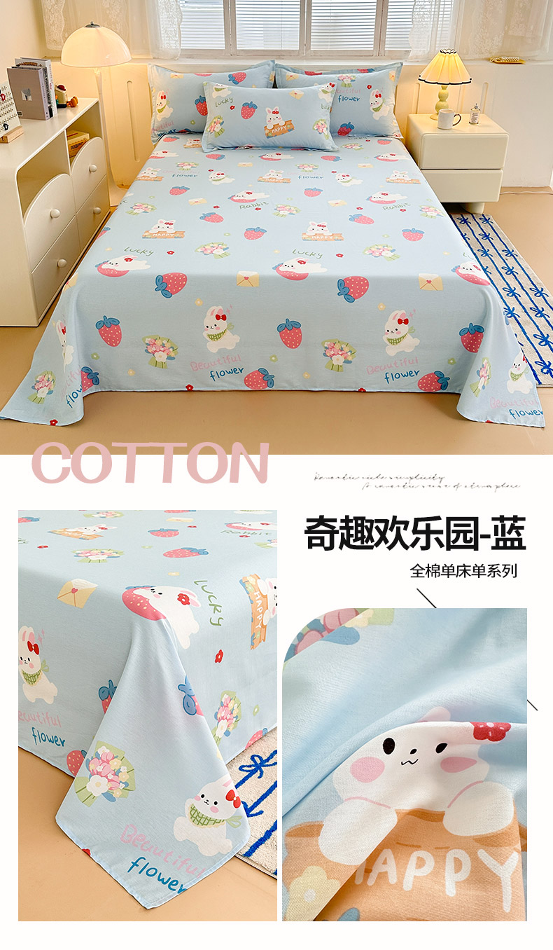 绵庭家纺 2025新款全棉印花单床单系列 奇趣欢乐园-蓝