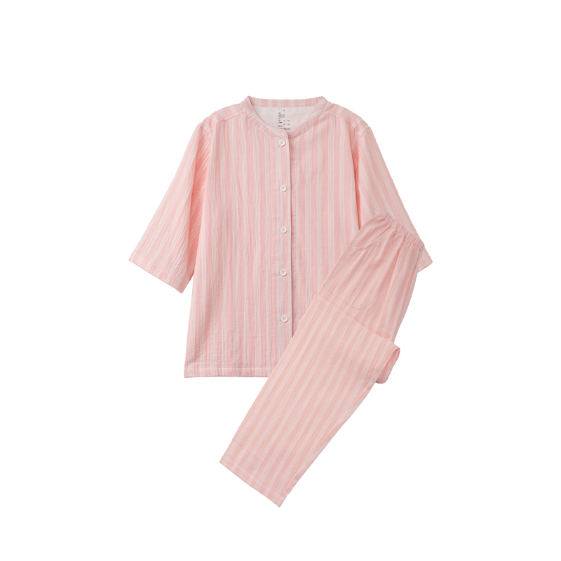 商品名称:玖弘家居 2024新款家居服系列-粉色条纹系列 粉条纹七分袖七分裤