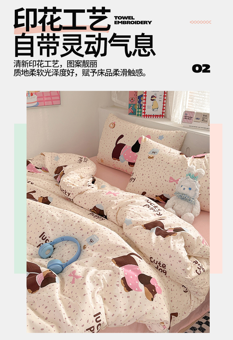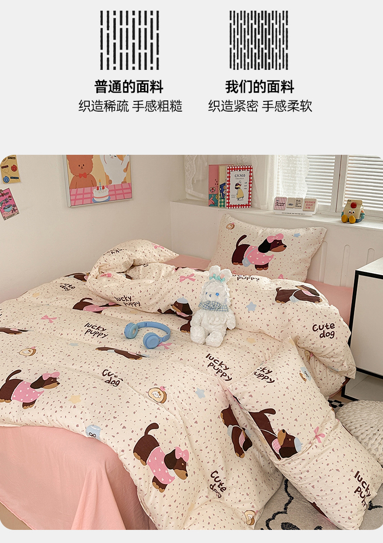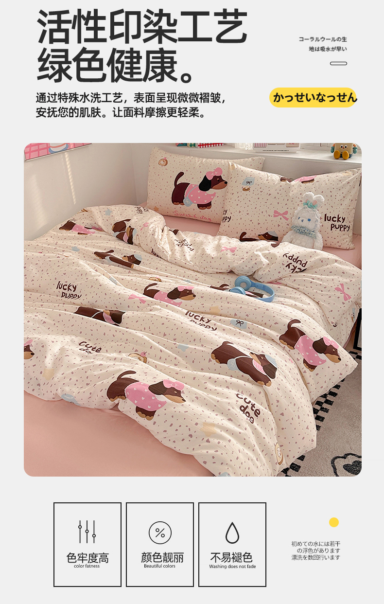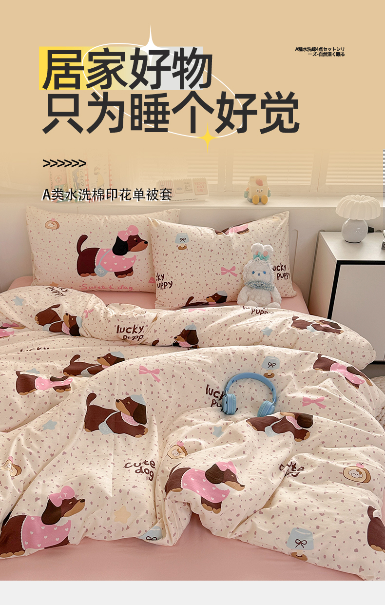 多品家纺 2024新款水洗棉大版枕套混搭单被套 小可爱