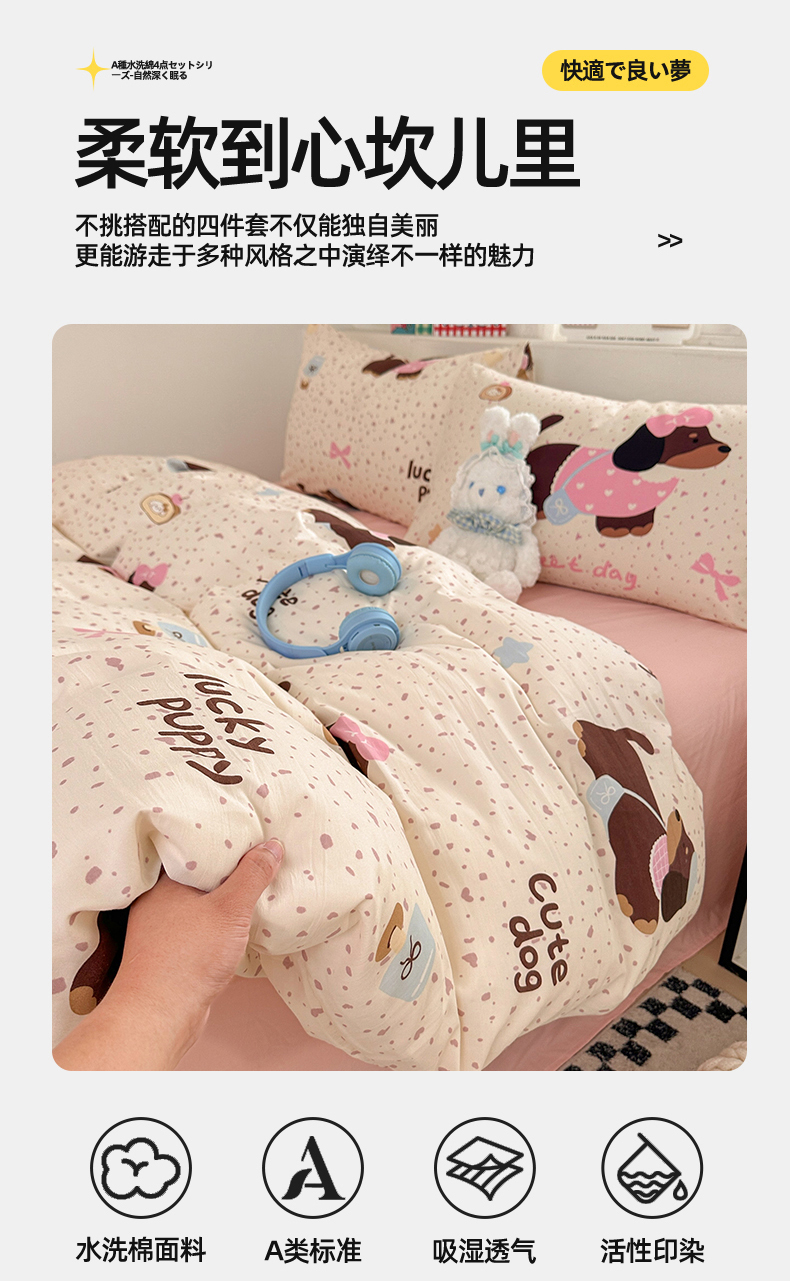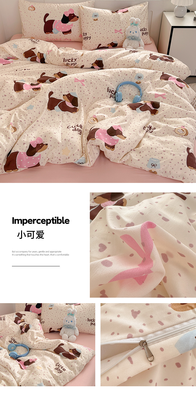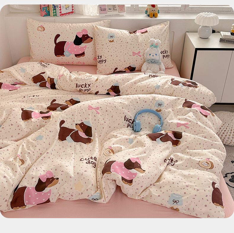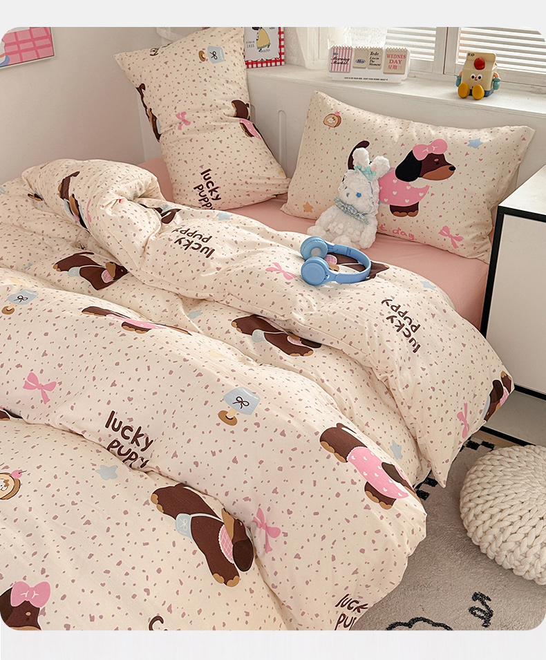 多品家纺 2024新款水洗棉大版枕套混搭单被套 小可爱