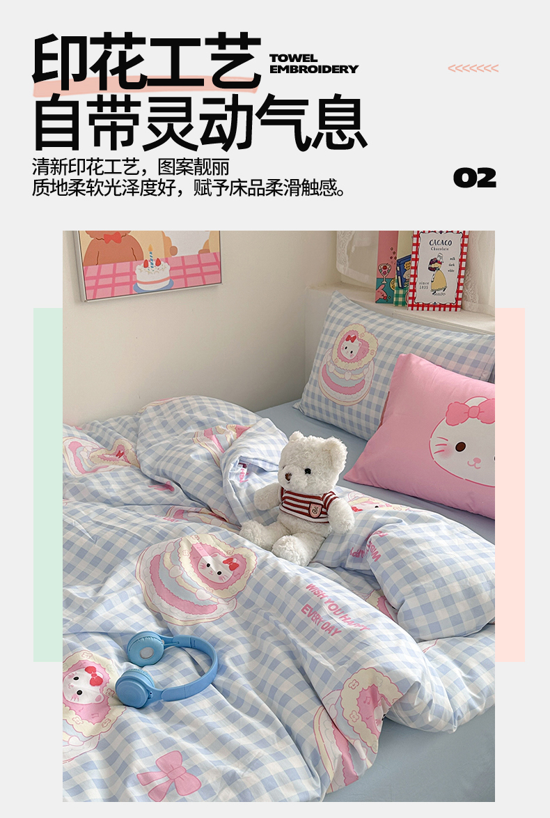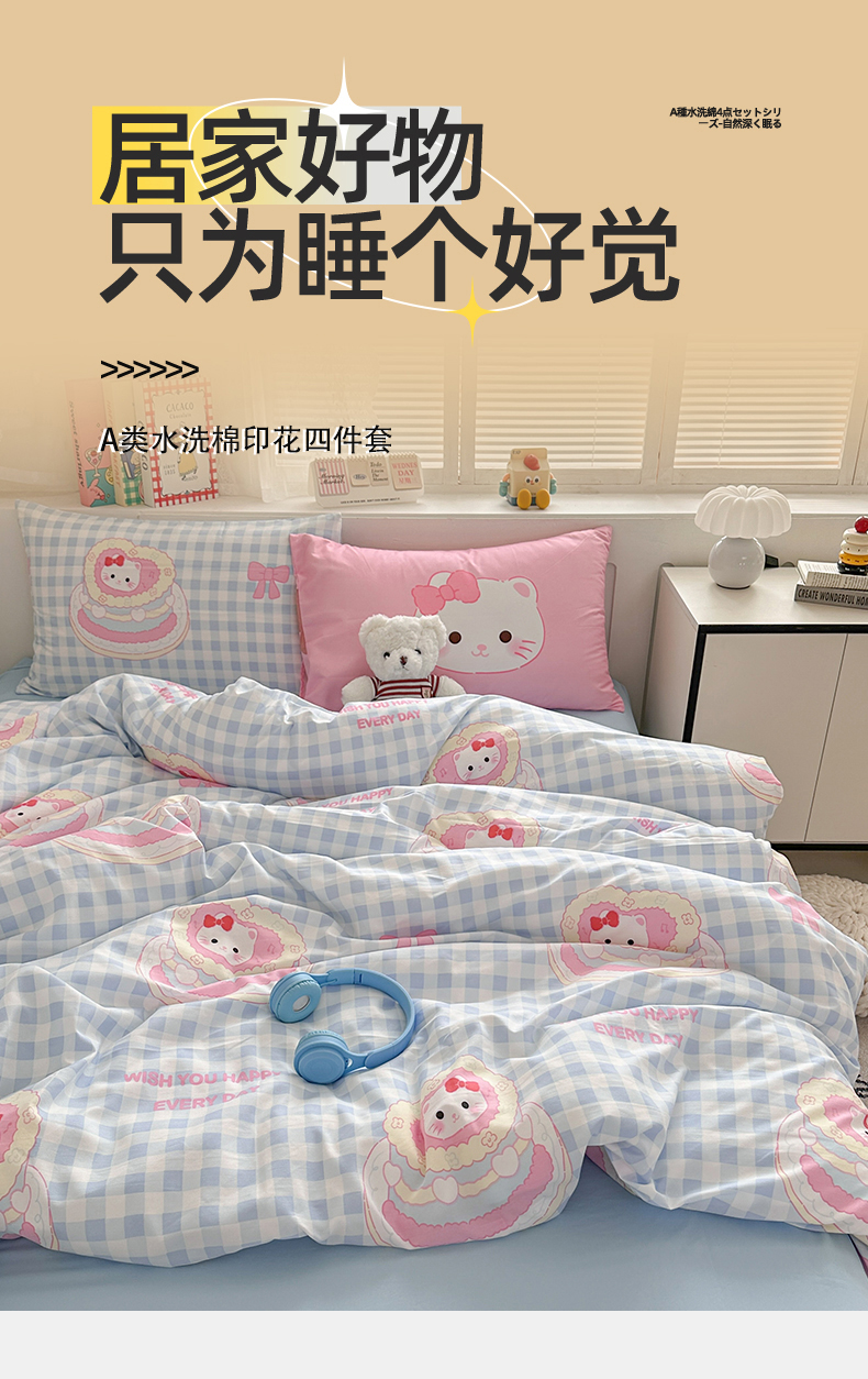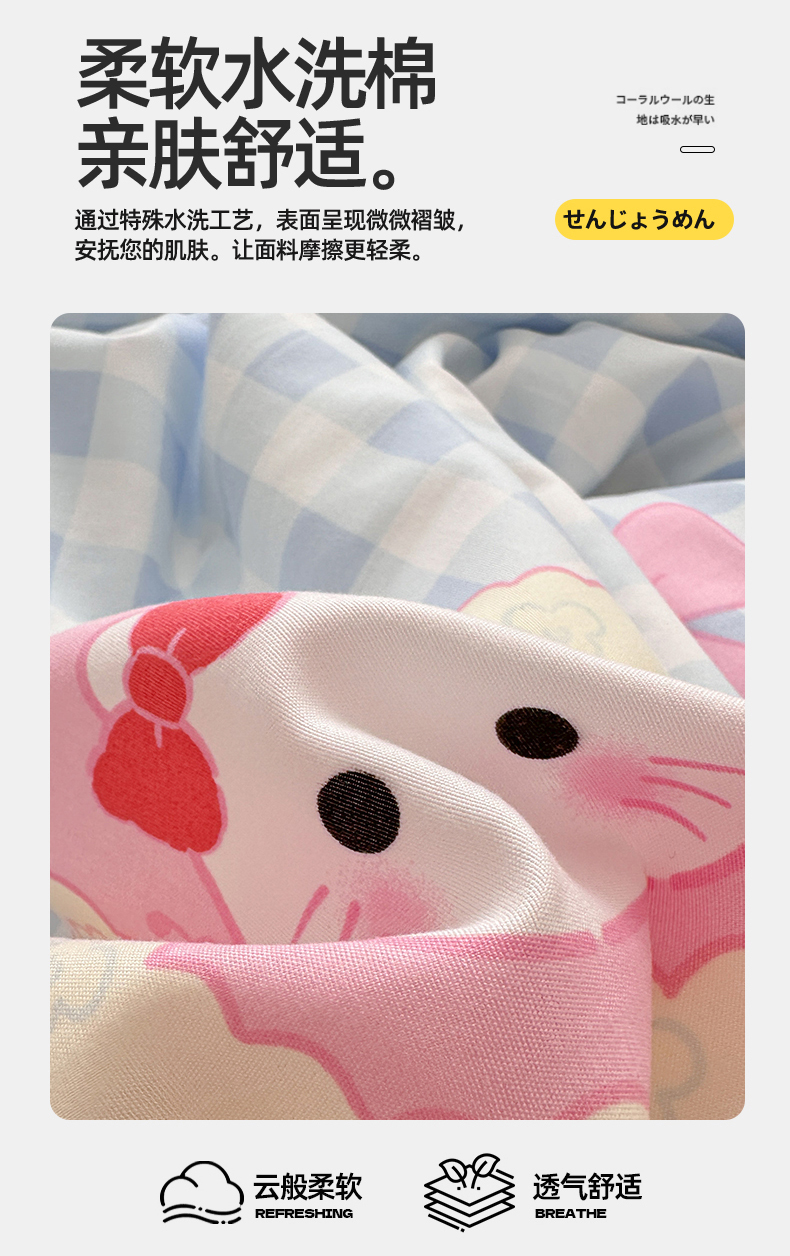 当前位置: 91家纺网 > 商品网购 > 床品套件 > 四件套 > 水洗棉四件套 > 多品家纺 2024新款水洗棉大版枕套混搭四件套 派对猫