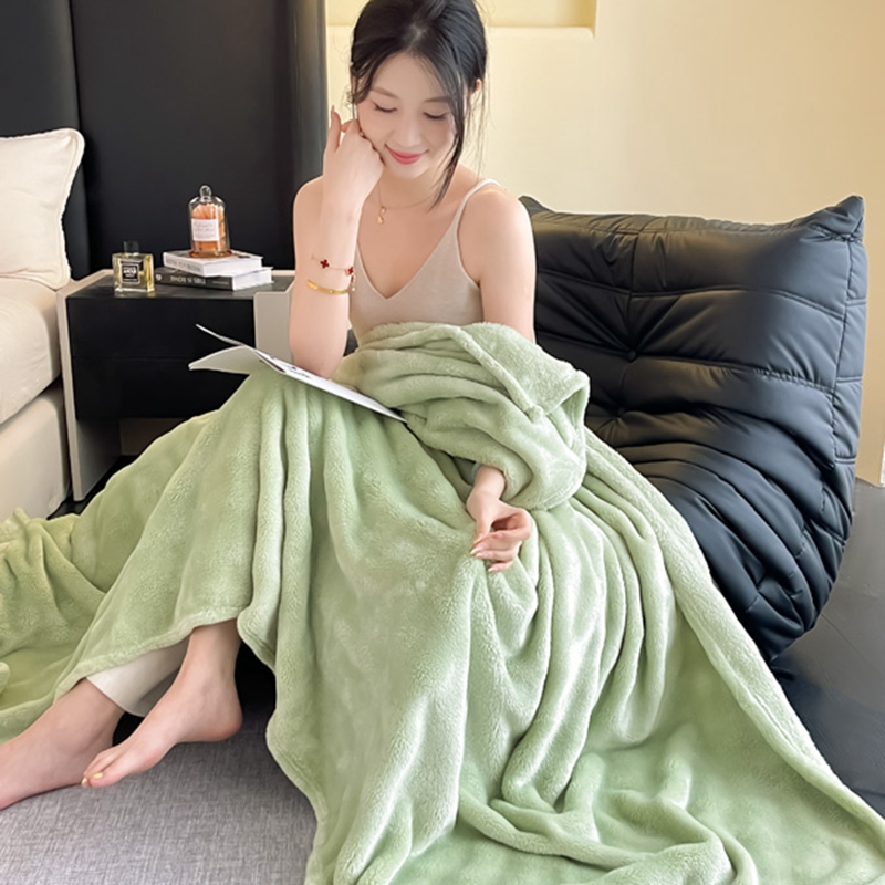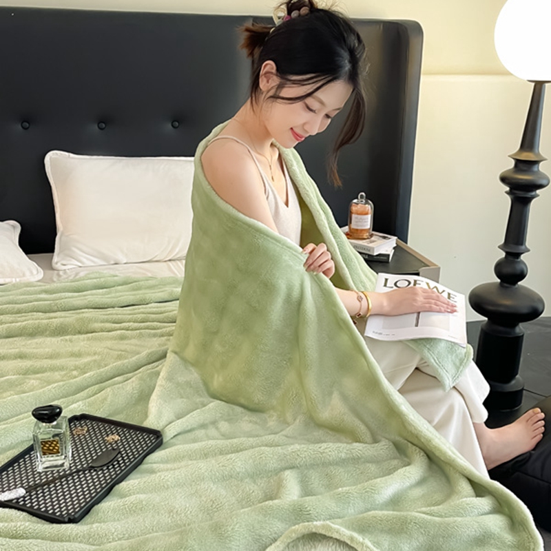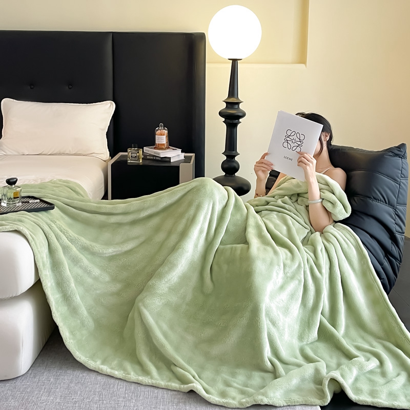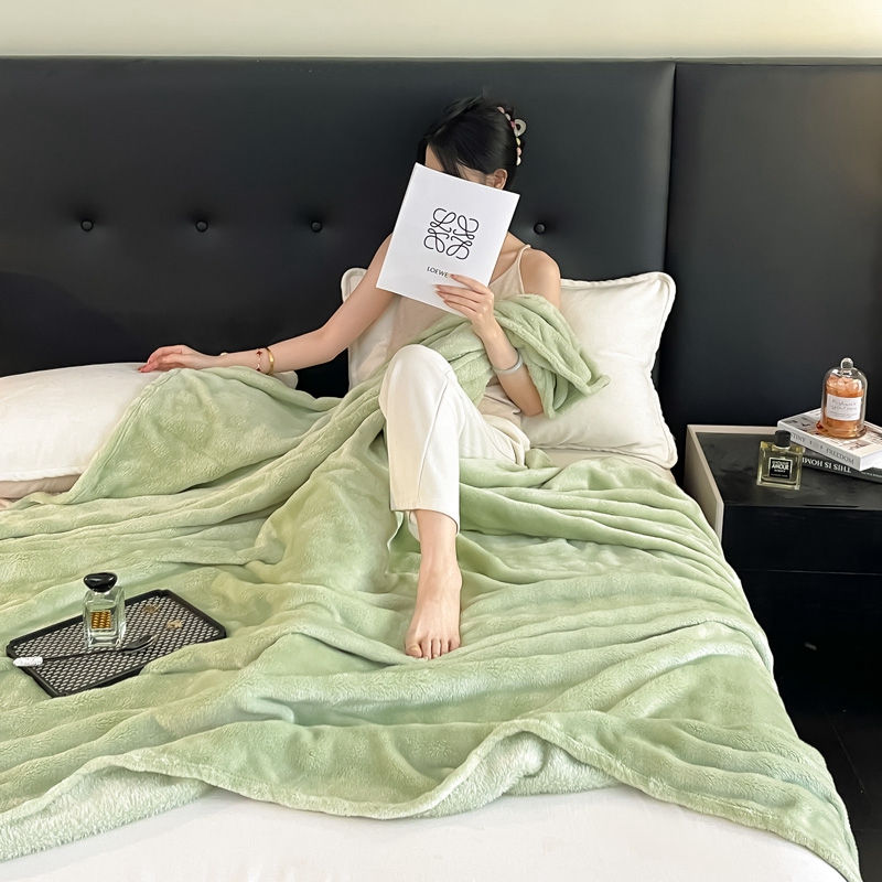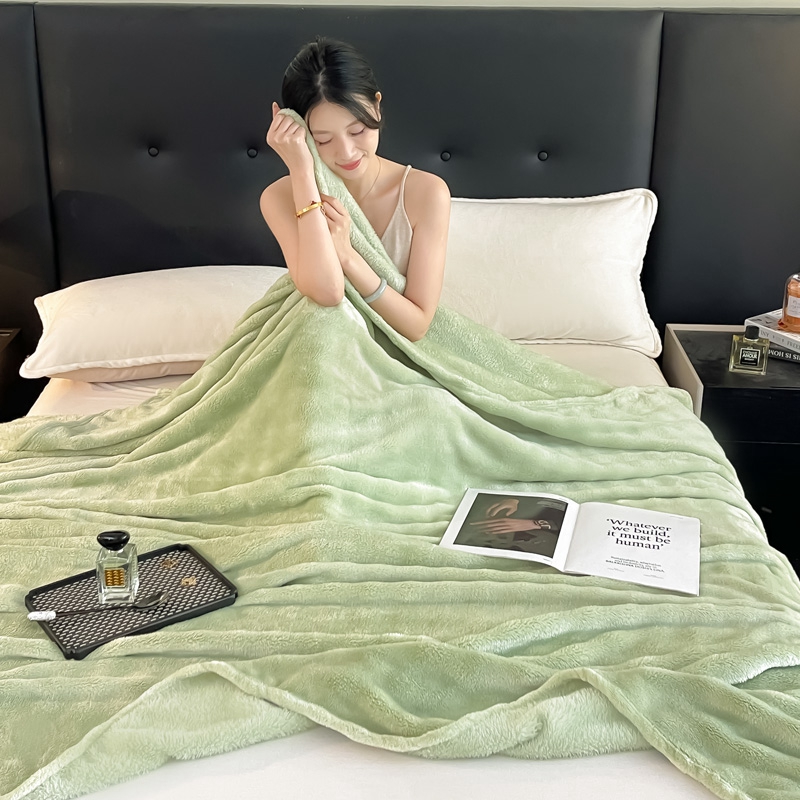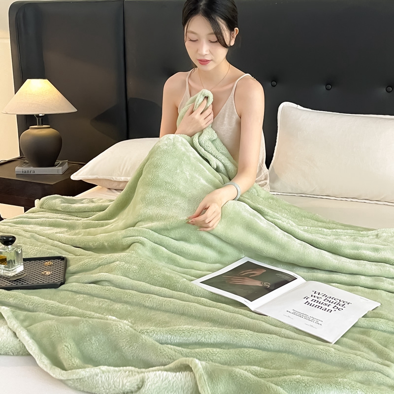 一帆毯业 免费压缩抽空 300克 仿兔毛泡泡绒高克重法莱绒牛奶绒珊瑚绒兔兔卷边毛毯(外贸跨境供货) 果绿
