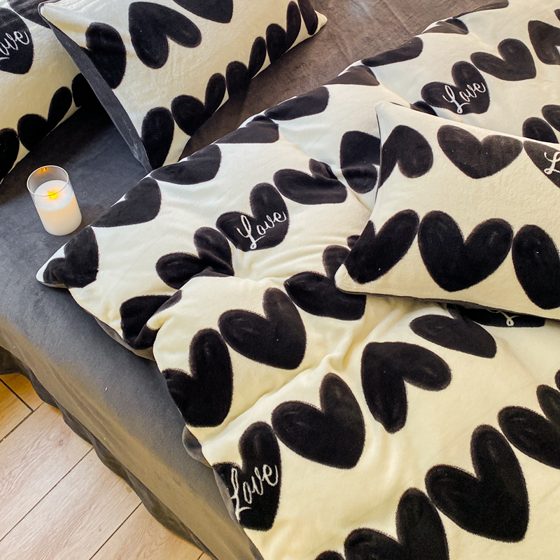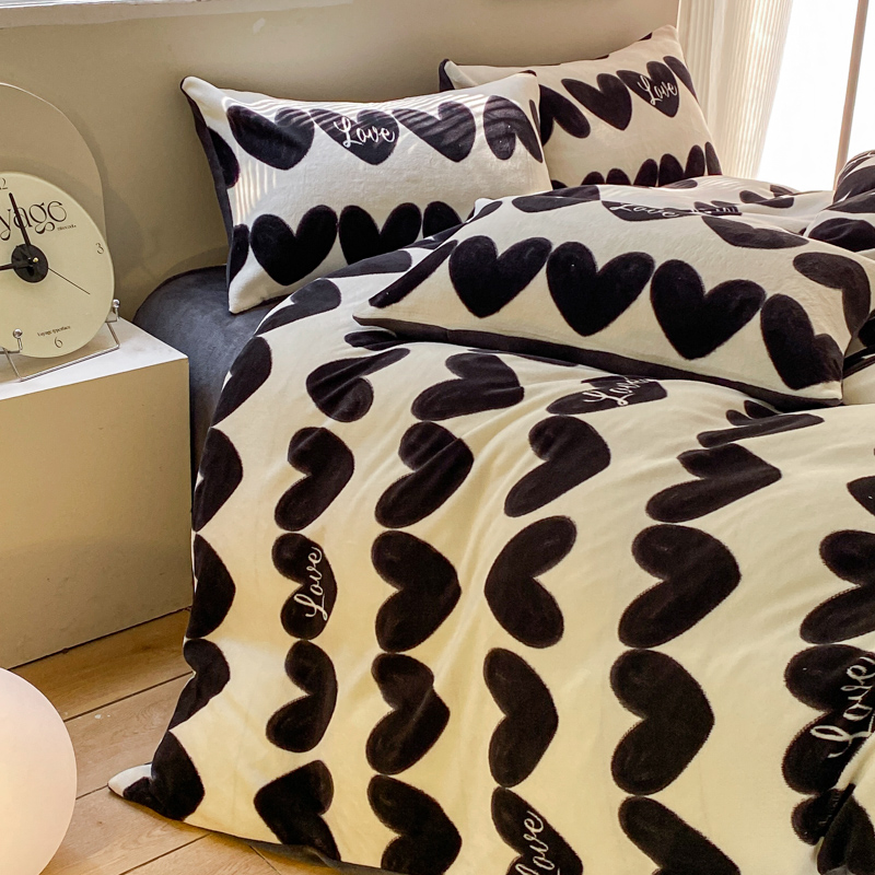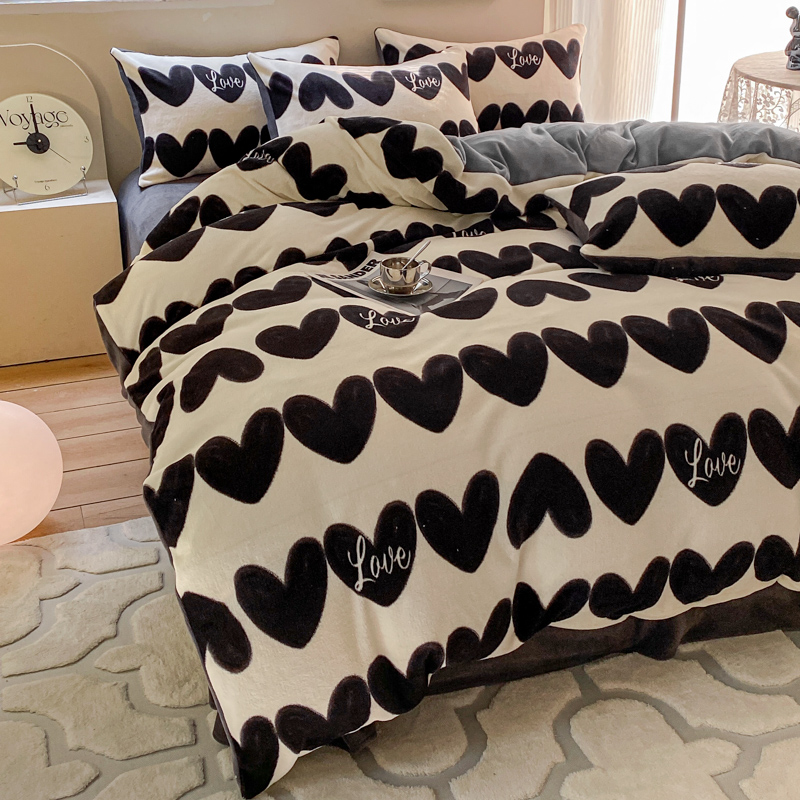斯卡诺家纺2025新款小清新双面牛奶绒印花四件套 喜欢你