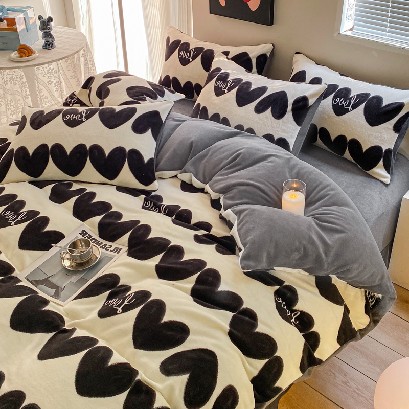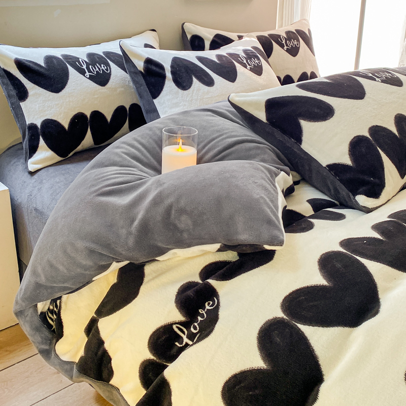 商品名称:斯卡诺家纺2025新款小清新双面牛奶绒印花四件套 喜欢你