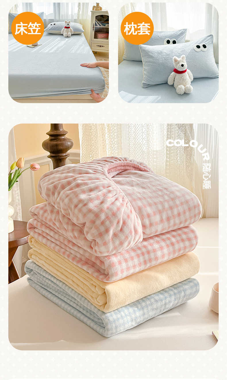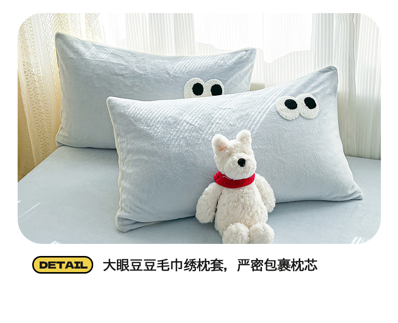 桃子家居 2025新款A类ins大眼豆豆加厚牛奶绒单品床单床笠三件套系列 绒单品-大眼豆豆天蓝床笠