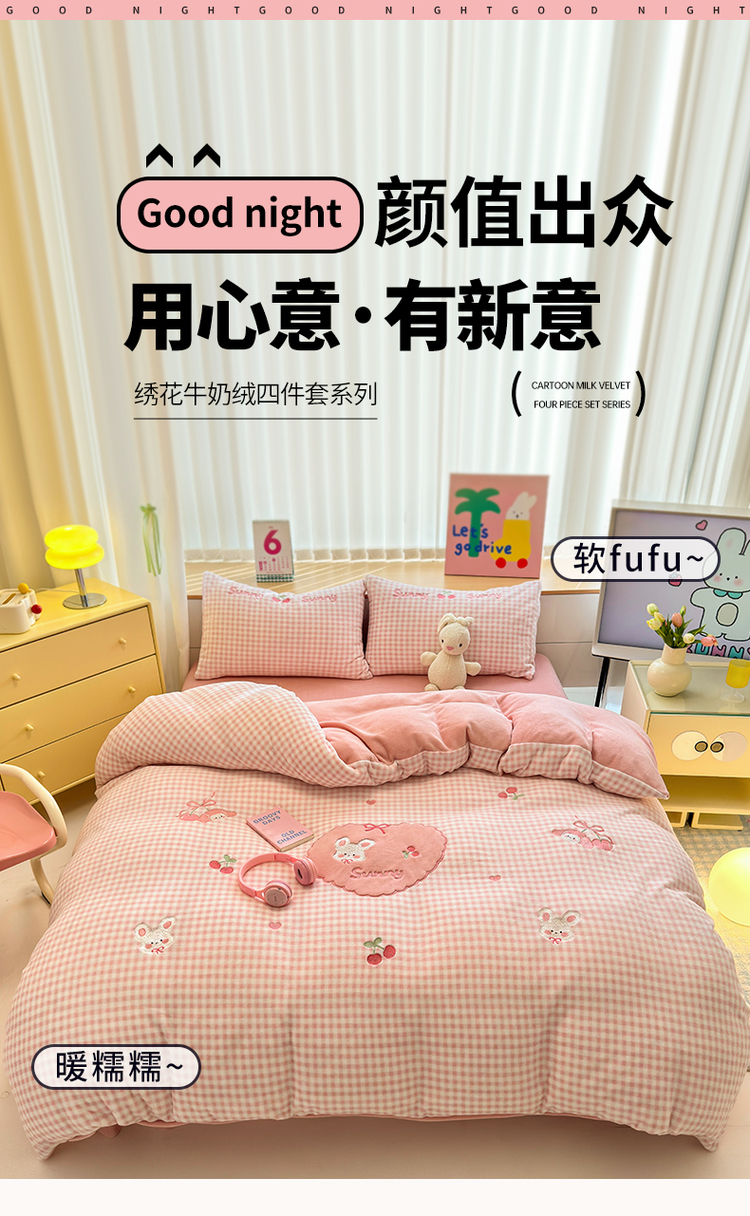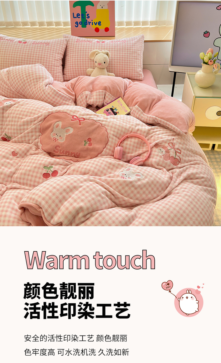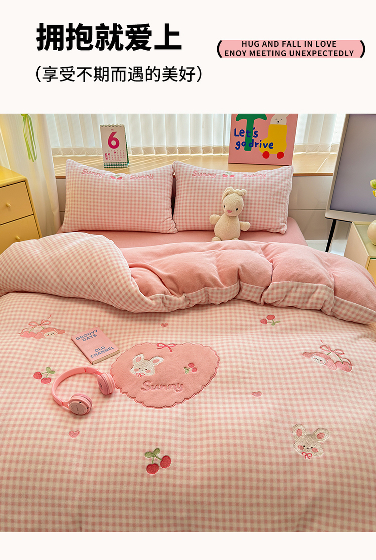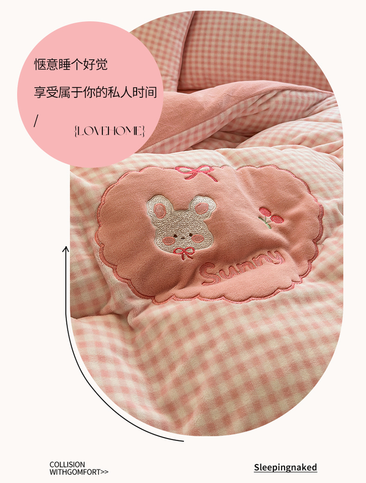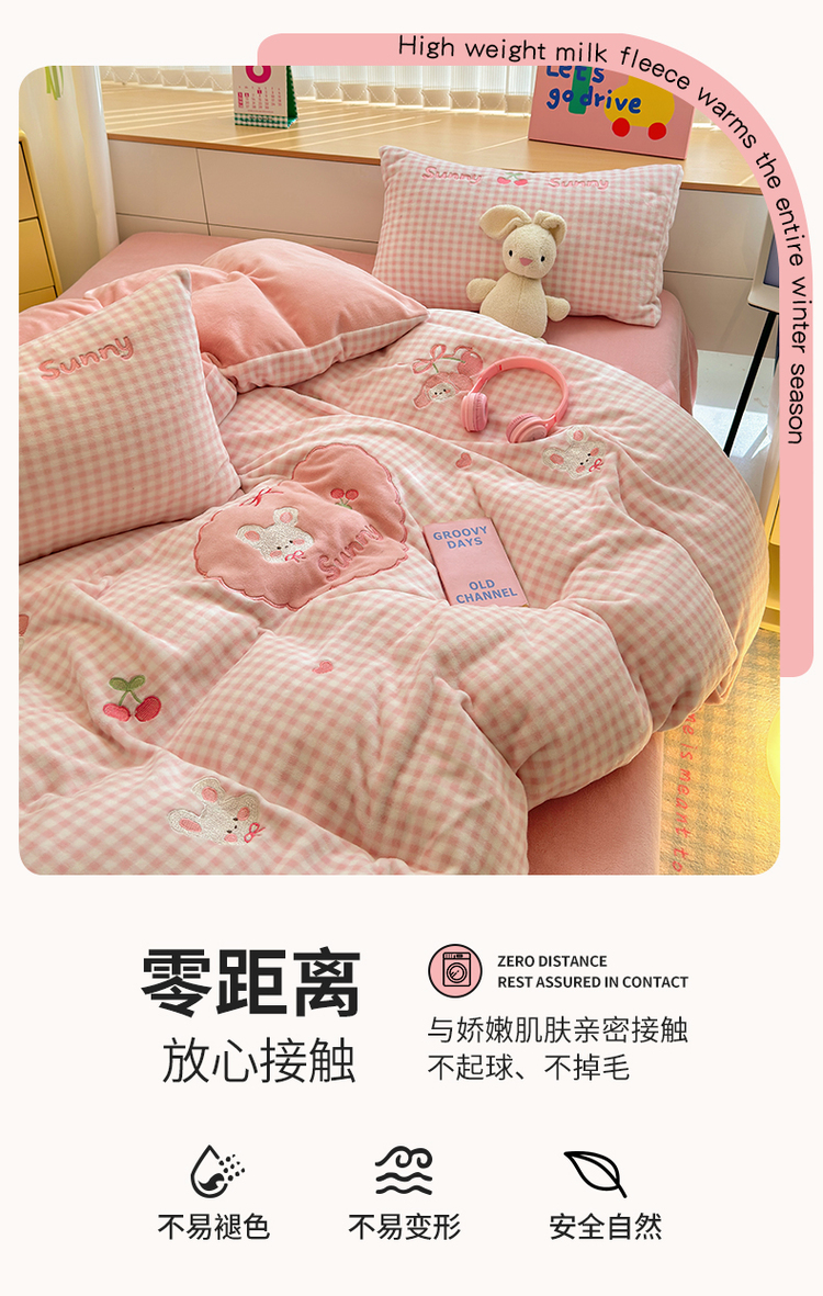 当前位置: 91家纺网 > 商品网购 > 床品套件 > 四件套 > 牛奶绒四件套 > (买家秀 爆款不断货)A类母婴级牛奶绒刺绣四件套珊瑚绒雪花绒四件套刺绣贴布绣牛奶绒绣花毛巾绣四件套 桑尼小兔