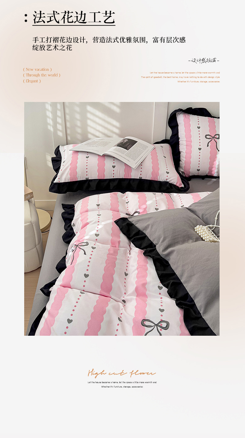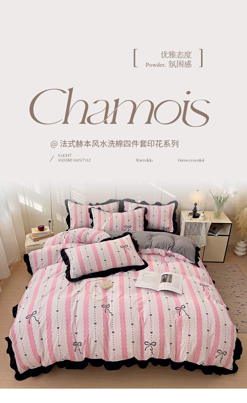 当前位置: 91家纺网 > 商品网购 > 床品套件 > 四件套 > 水洗棉四件套 > 鑫利来家纺 2025新款法式花边赫本风水洗棉四件套 赫本风-蝴蝶结粉