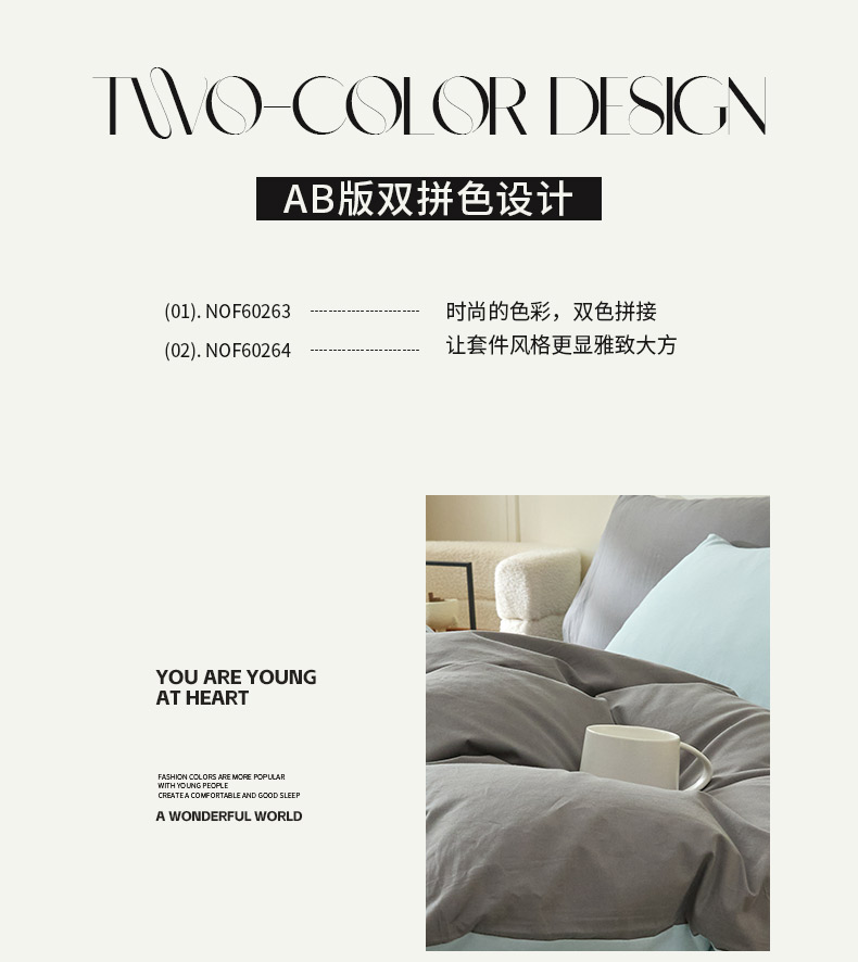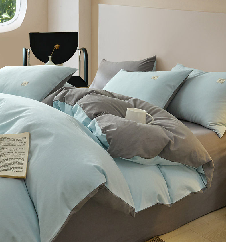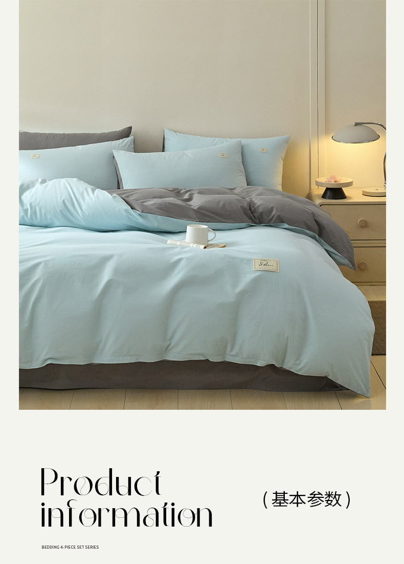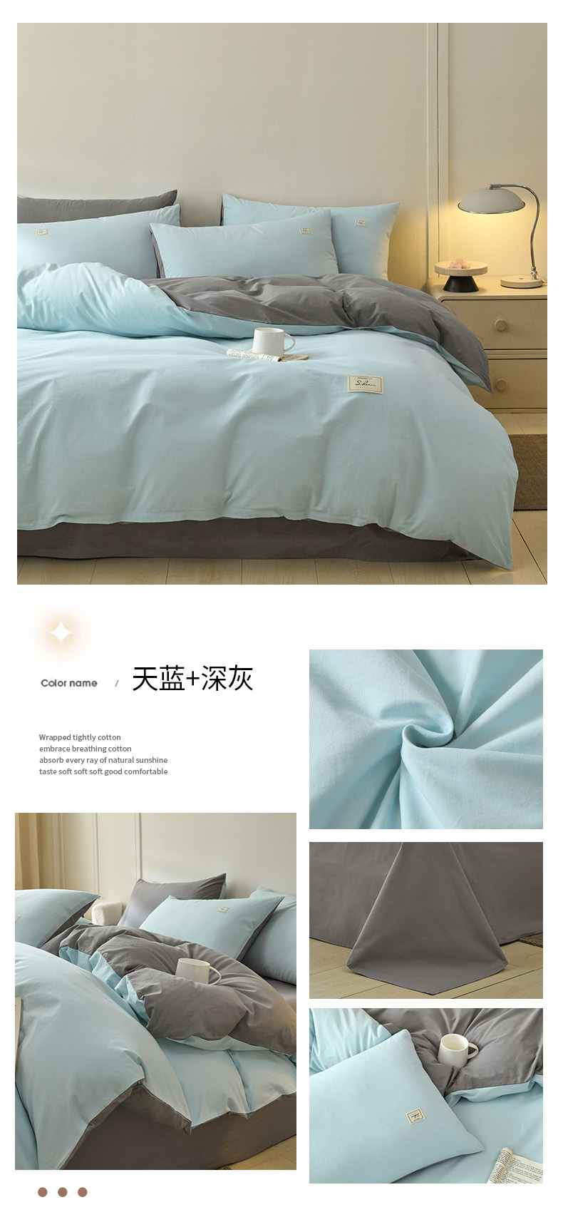 当前位置: 91家纺网 > 商品网购 > 床品套件 > 四件套 > 全棉普通四件套 > ab家纺 2025新款色织全棉40支水洗棉四件套--双拼第二组 天空蓝深灰