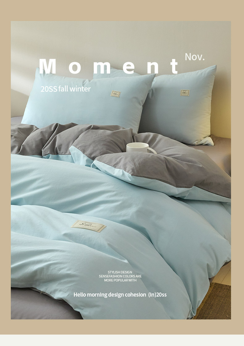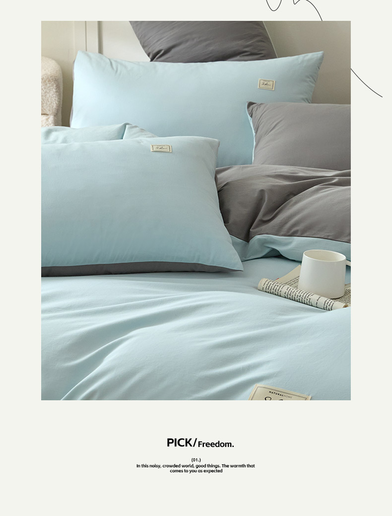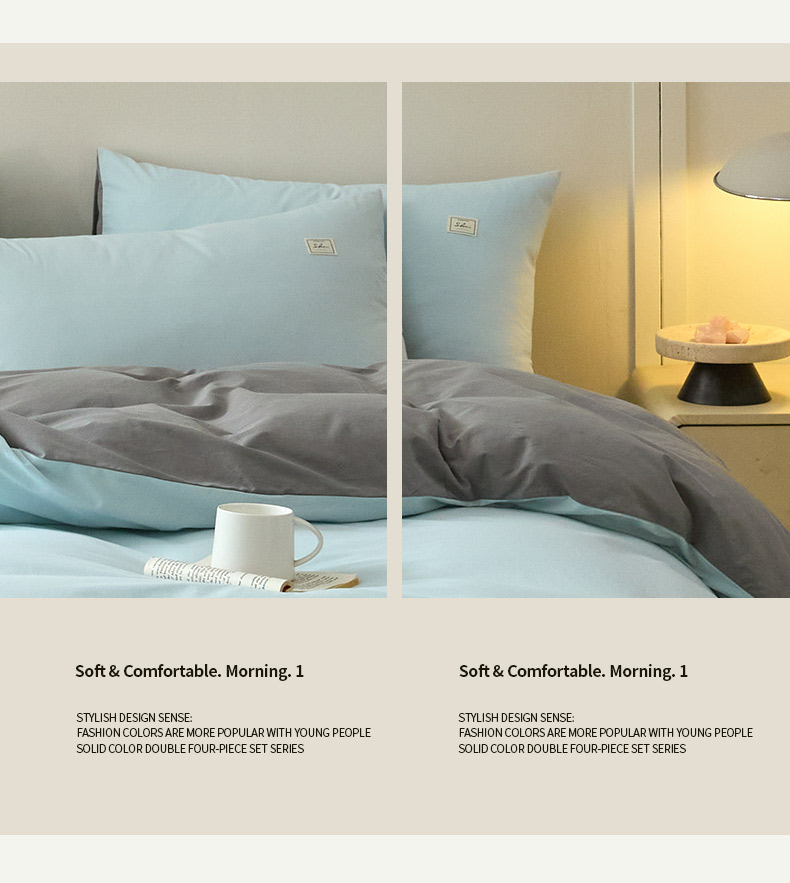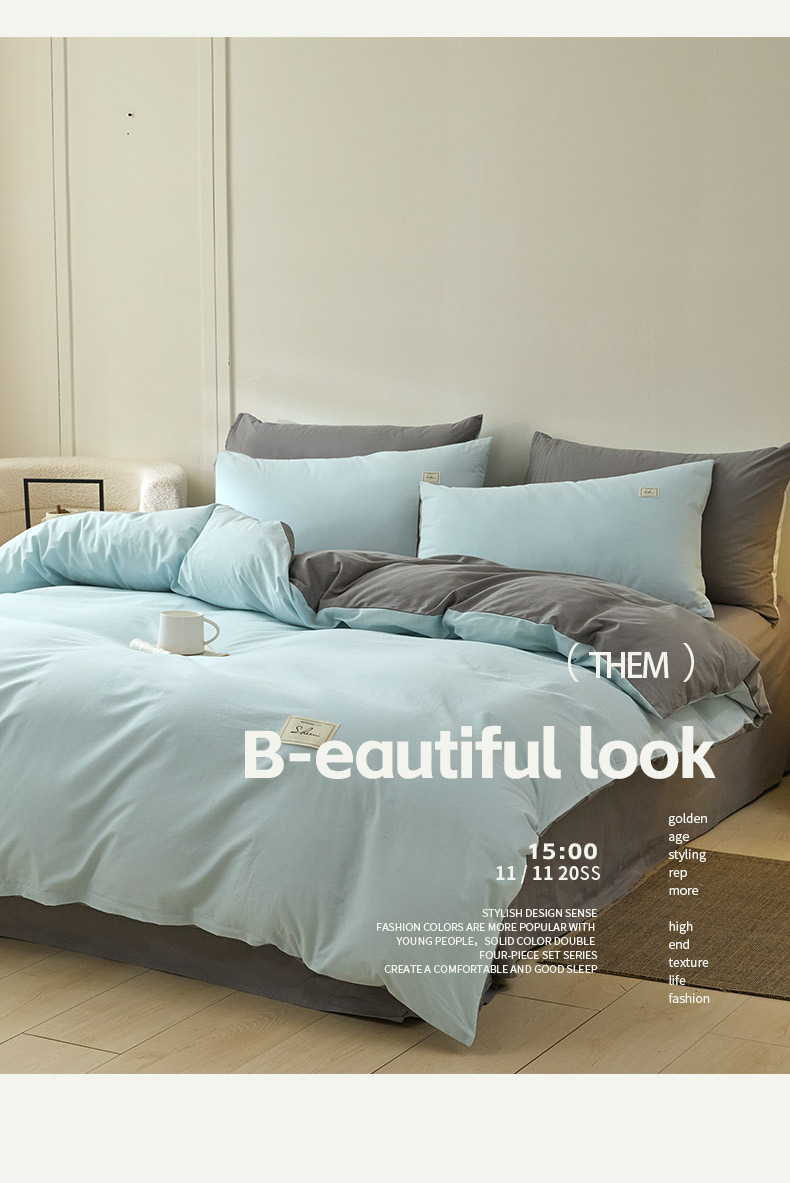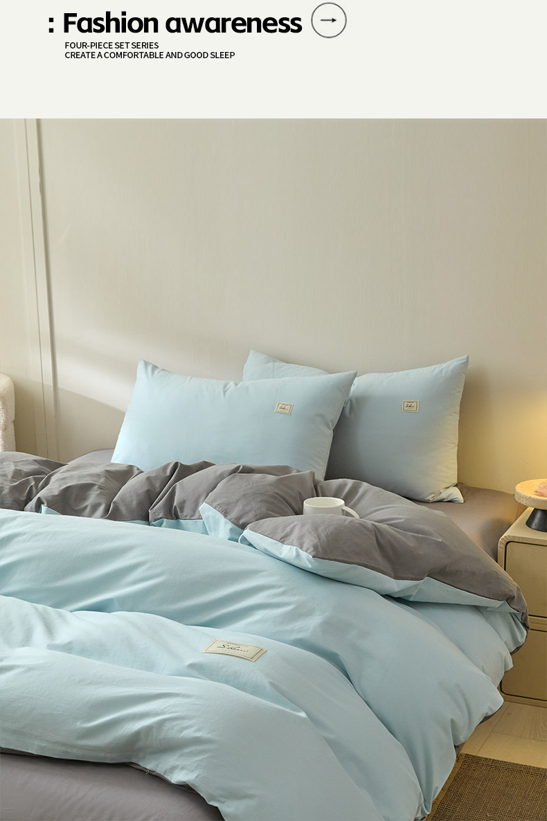 当前位置: 91家纺网 > 商品网购 > 床品套件 > 四件套 > 全棉普通四件套 > ab家纺 2025新款色织全棉40支水洗棉四件套--双拼第二组 天空蓝深灰